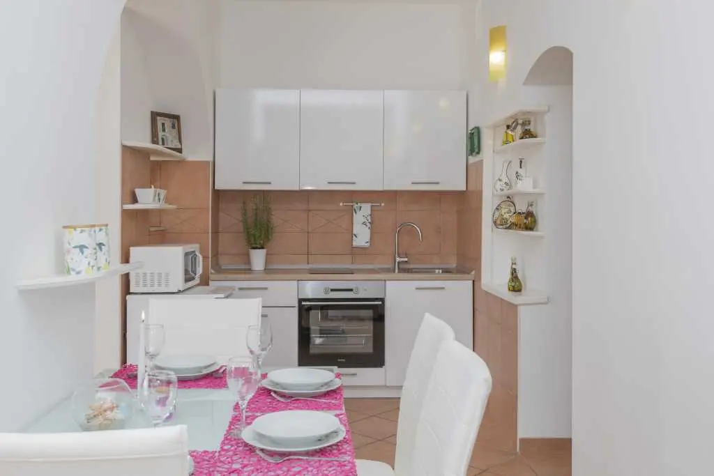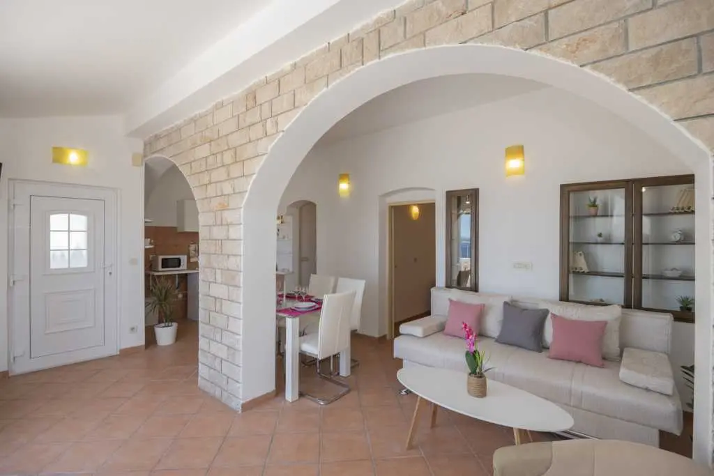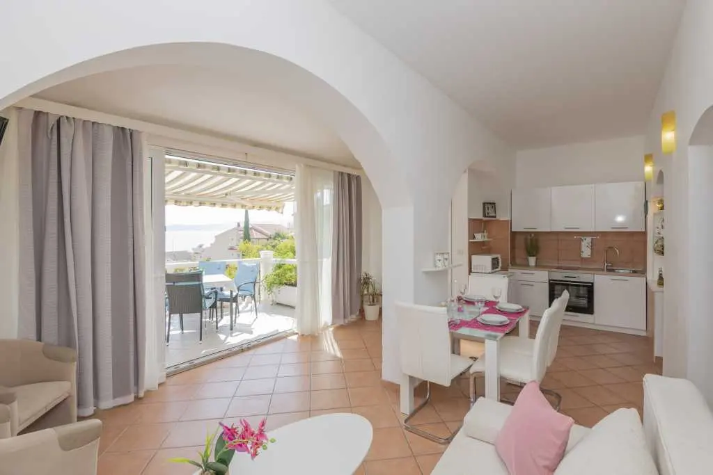 Apartament "Lucija" znajduje się w miejscowości Baska Voda. Mieszkanie posiada własne wejście i garaż. Znajduje się w bardzo ładnym miejscu 5 minut spacerkiem do plaży. Wspaniały apartament jest nowy i oferuje wszystko, czego potrzeba do komfortowego pobytu. Nowocześnie urządzona przestrzeń składa się z dwóch sypialni, każda z łazienką. W jednej przestrzeni znajduje się kuchnia, jadalnia i pokój dzienny z TV. Z salonu wyjście na przestronny balkon z pięknym widokiem na całe miejsce i morze, skąd można cieszyć się każdą chwilą pobytu. Samochód można zaparkować w zadaszonym garażu, z którego schody prowadzą prosto do mieszkania.