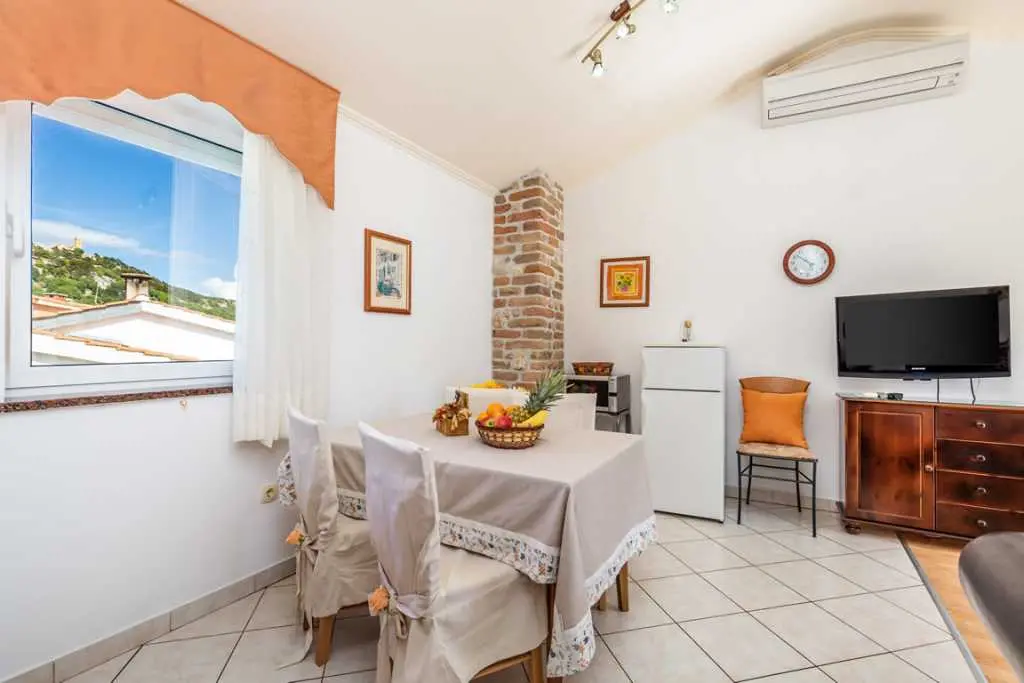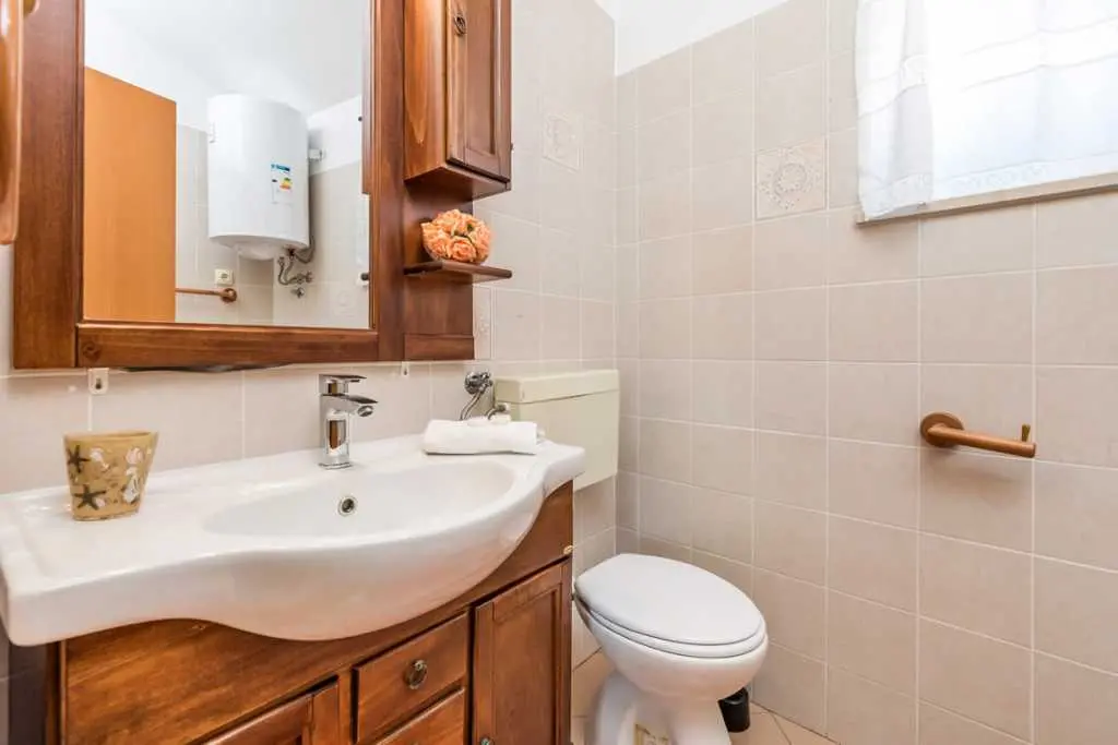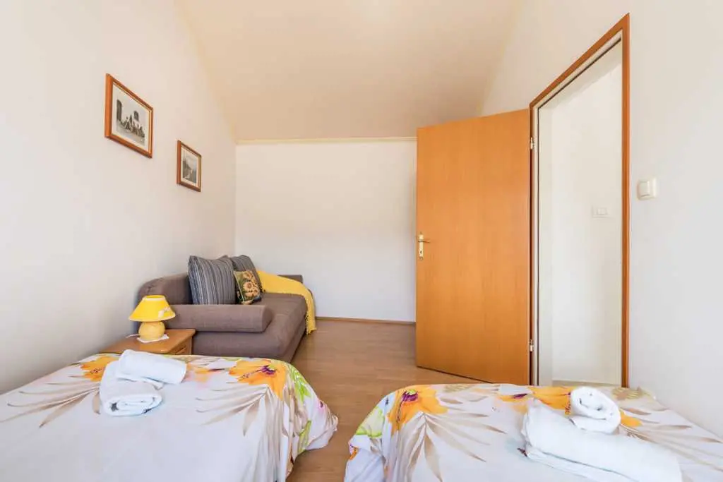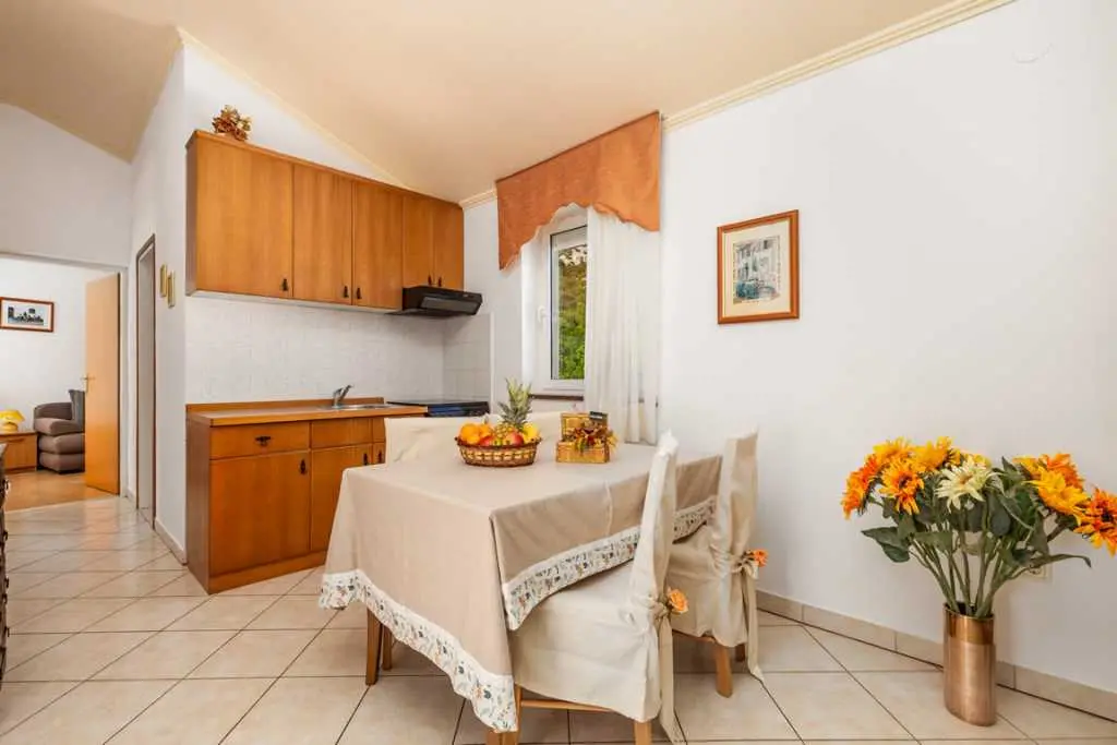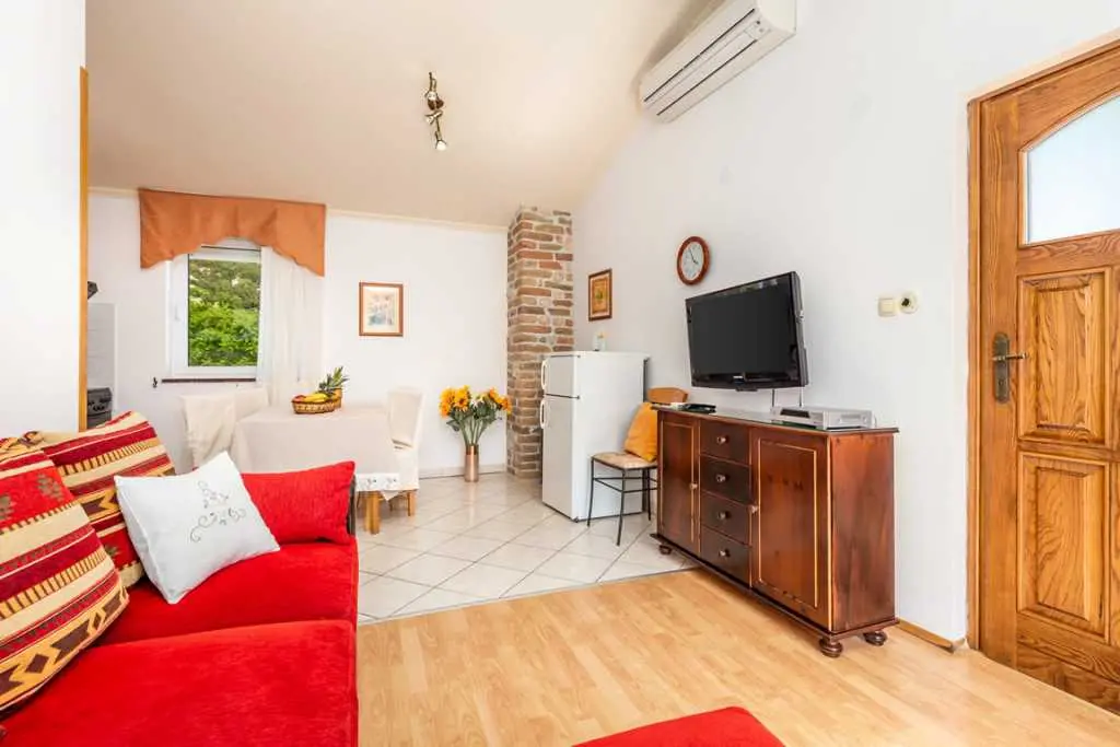 Apartamenty znajdują się na spokojnym miejscu w pobliżu centrum miasta. Wystarczy 5 minut spaceru (350 m) i ll znaleźć się na najpiękniejszej plaży nad Adriatykiem. Wielkość mieszkania to 60 metrów kwadratowych. Apartamenty posiadają jedną sypialnię z podwójnym łóżkiem, jeden pokój z 2-3 łóżkami, łazienka z WC, przestronny iw pełni wyposażoną kuchnią i salonem z kanapą i telewizorem z dostępem do programów satelitarnych. Każdy apartament posiada balkon. Wszyscy goście mogą korzystać z grilla, który jest na tarasie, souranded z colourfull zielonym otoczeniu. Wszystkich gości mają również miejsce parkingowe. Apartamenty posiadają klimatyzację.
