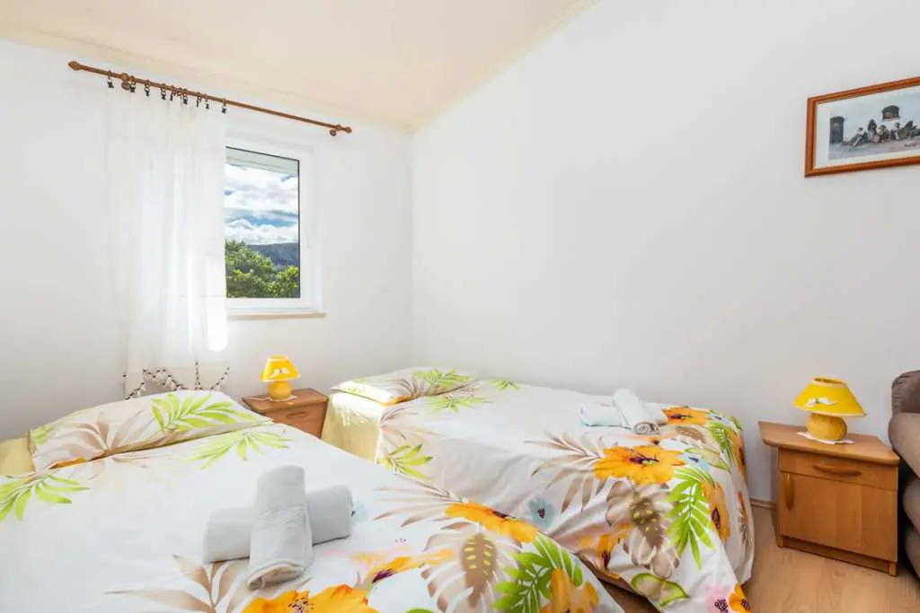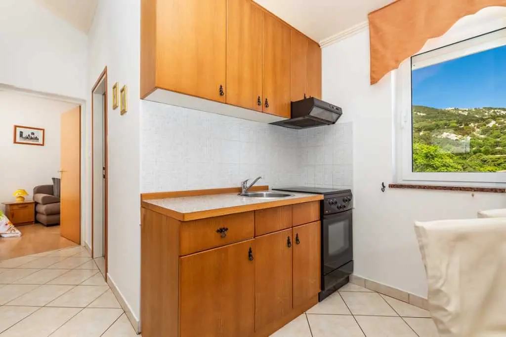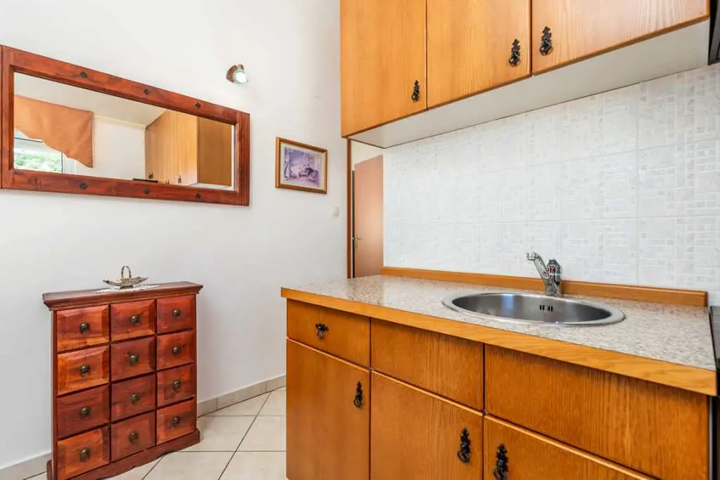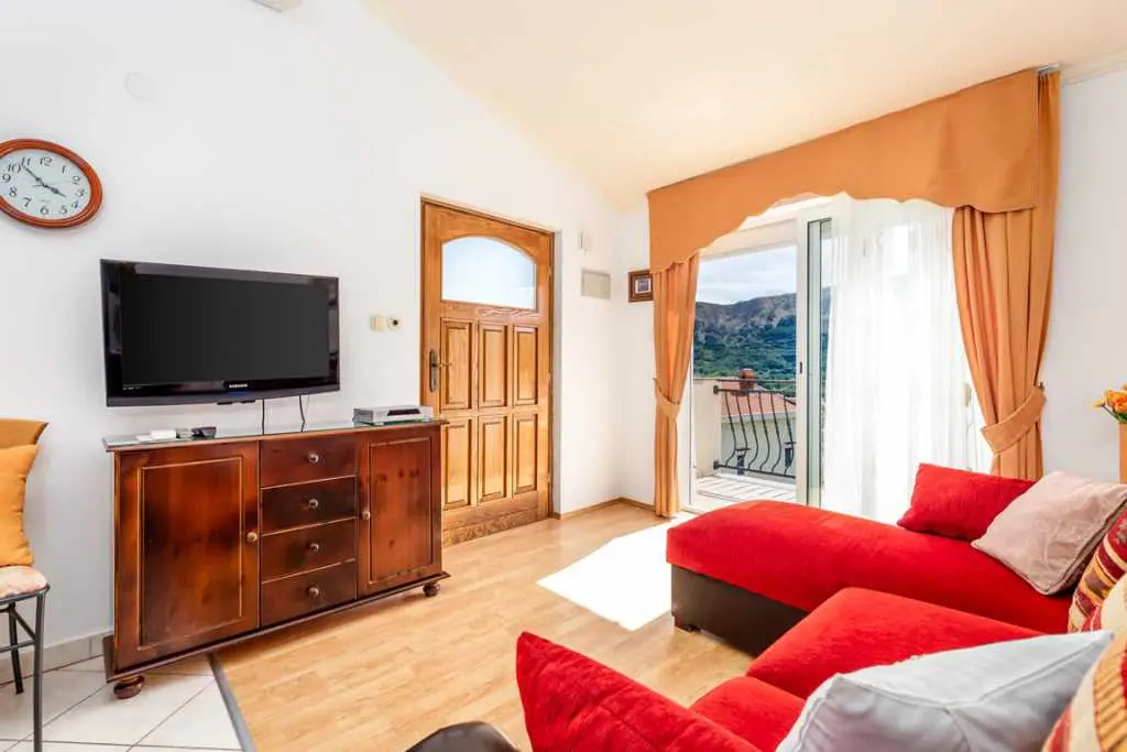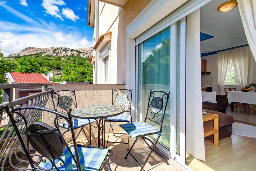 Apartamenty znajdują się na spokojnym miejscu w pobliżu centrum miasta. Wystarczy 5 minut spaceru (350 m) i ll znaleźć się na najpiękniejszej plaży nad Adriatykiem. Wielkość mieszkania to 60 metrów kwadratowych. Apartamenty posiadają jedną sypialnię z podwójnym łóżkiem, jeden pokój z 2-3 łóżkami, łazienka z WC, przestronny iw pełni wyposażoną kuchnią i salonem z kanapą i telewizorem z dostępem do programów satelitarnych. Każdy apartament posiada balkon. Wszyscy goście mogą korzystać z grilla, który jest na tarasie, souranded z colourfull zielonym otoczeniu. Wszystkich gości mają również miejsce parkingowe. Apartamenty posiadają klimatyzację.