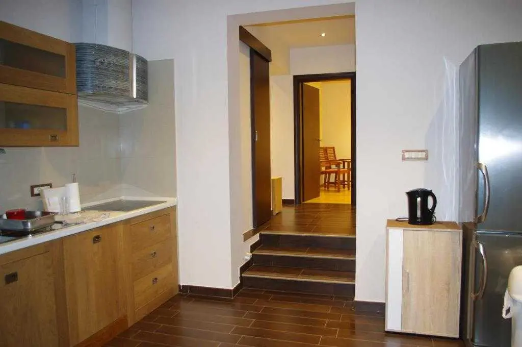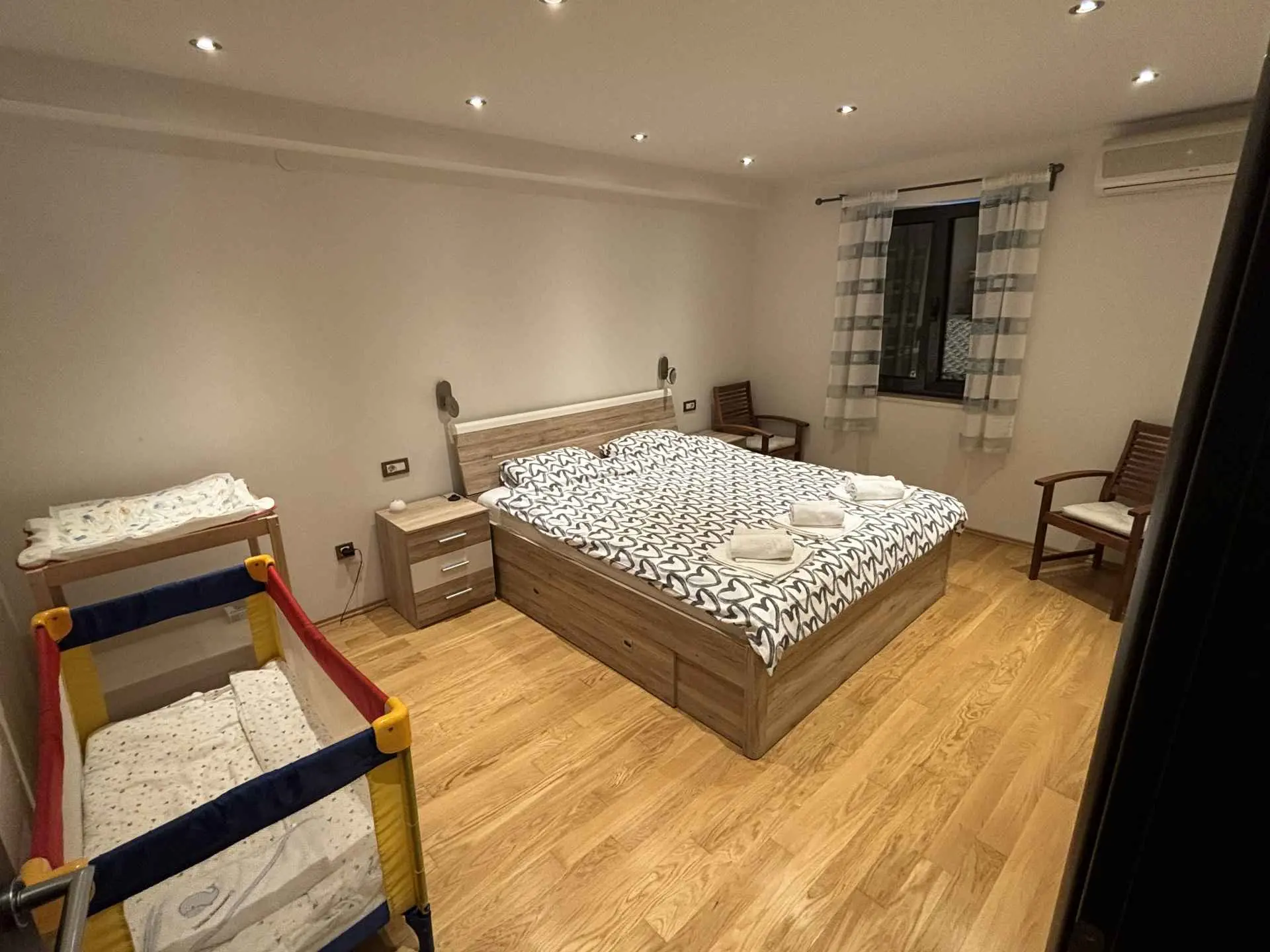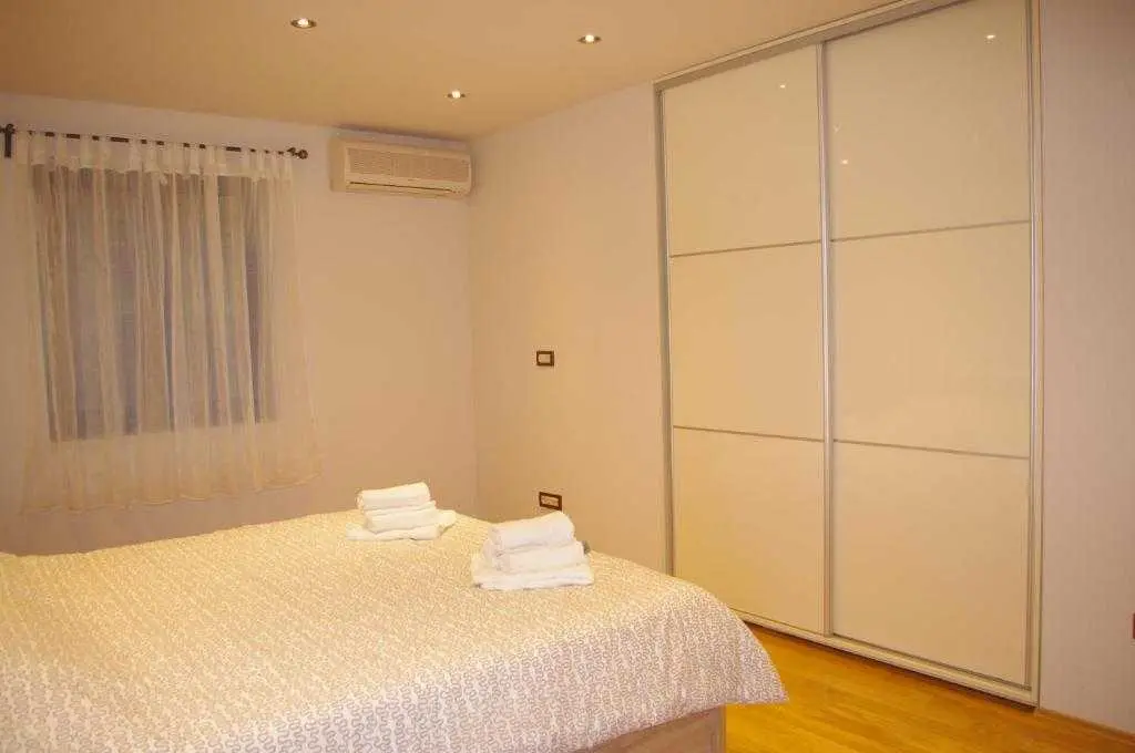 Zupełnie nowy luksusowy apartament w doskonałej i spokojnej okolicy idealny na wakacje. Apartament znajduje się w obszarze parterze 92 m2 z pięknym tarasem i ogrodem krajobrazowym. W ogrodzie są prywatne grill, trawnik i piękne brukowane podwórze. Istnieje prywatny parking, a także nieograniczoną liczbę bezpłatnych miejsc parkingowych w sąsiedztwie (10 m od apartamentów). Apartament posiada dwie sypialnie z podwójnymi łóżkami (king size), duża kuchnia z jadalnią, oraz piękny salon z dużą narożną sofą, że w razie potrzeby można przekształcić w łóżko 2x 80x200 lub podwójne łóżko 160x200. Apartament posiada 3 warunków powietrza w każdym pokoju, telewizję satelitarną, internet Wi - Fi, kuchnia z wszystkich urządzeń, w tym zmywarkę, lodówkę i pralkę z suszarką.