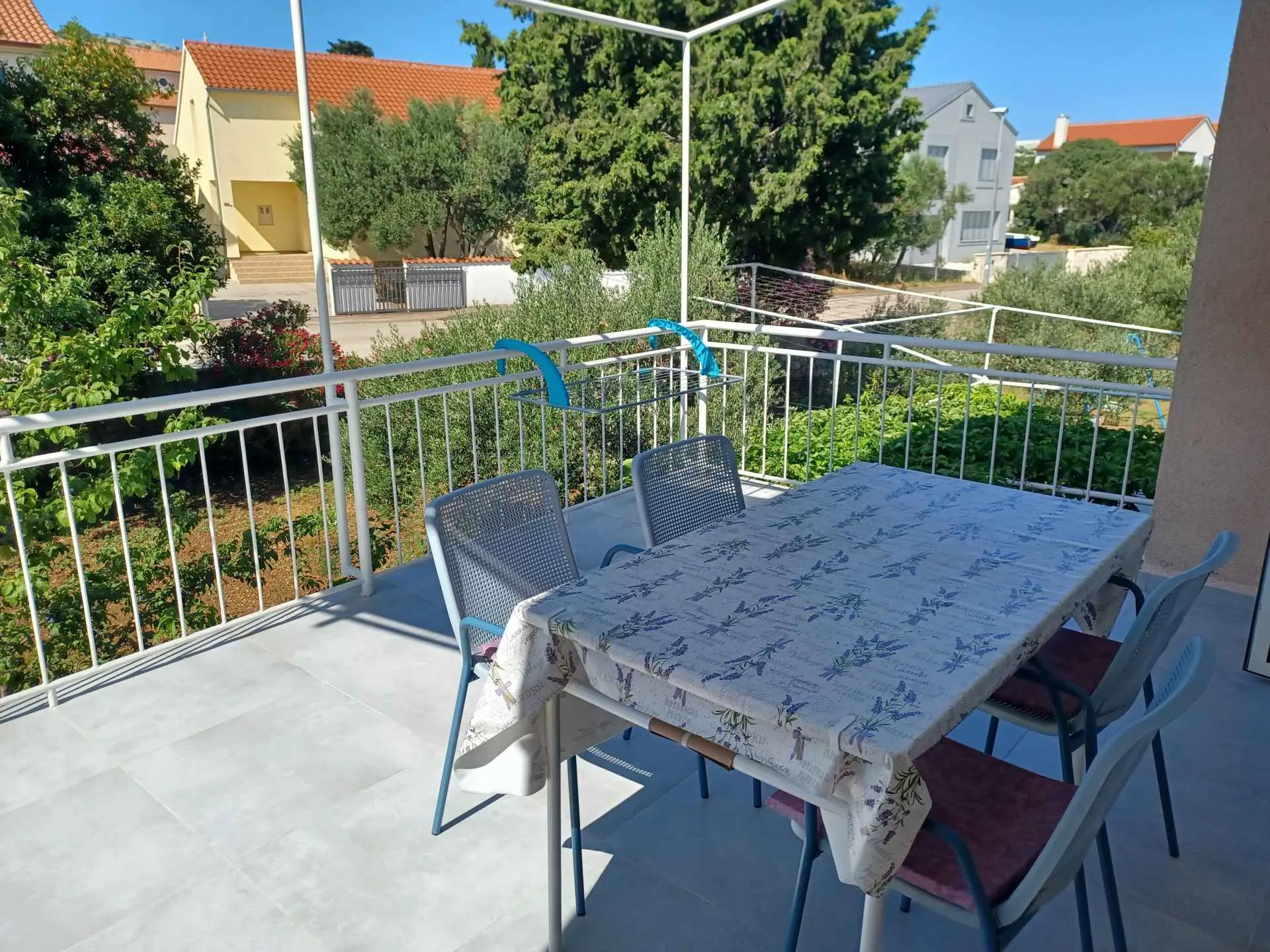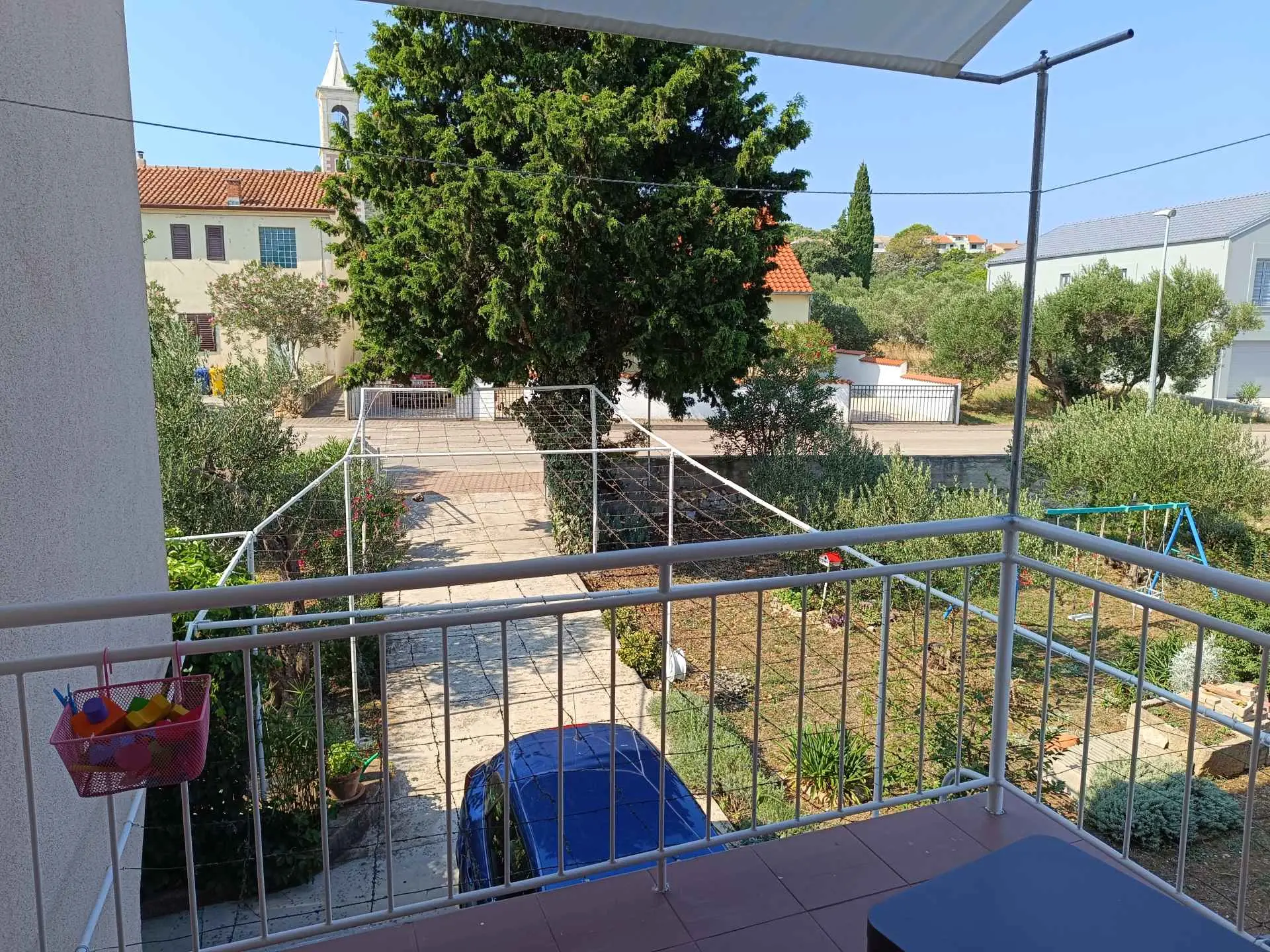Apartament z dwiema wygodnymi sypialniami, salonem z kuchnią, tarasem i balkonem. Wszystkie pokoje wyposażone są w klimatyzację. Zakwaterowanie znajduje się na pierwszym piętrze w rodzinnym domu, w którym mieszkają gospodarze. Parking znajduje się na podwórzu budynku, a w ogrodzie znajduje się grill i huśtawki dla dzieci.