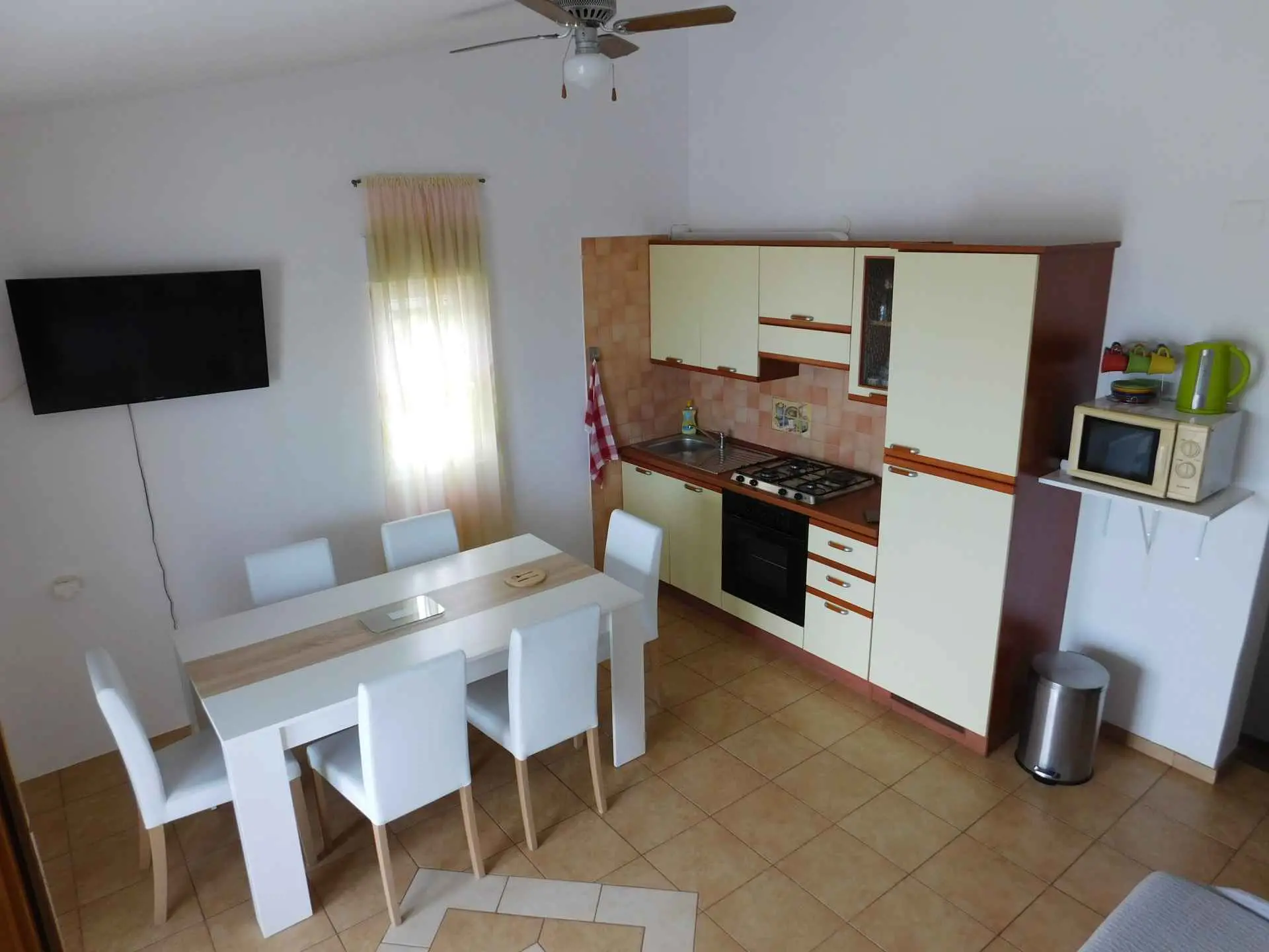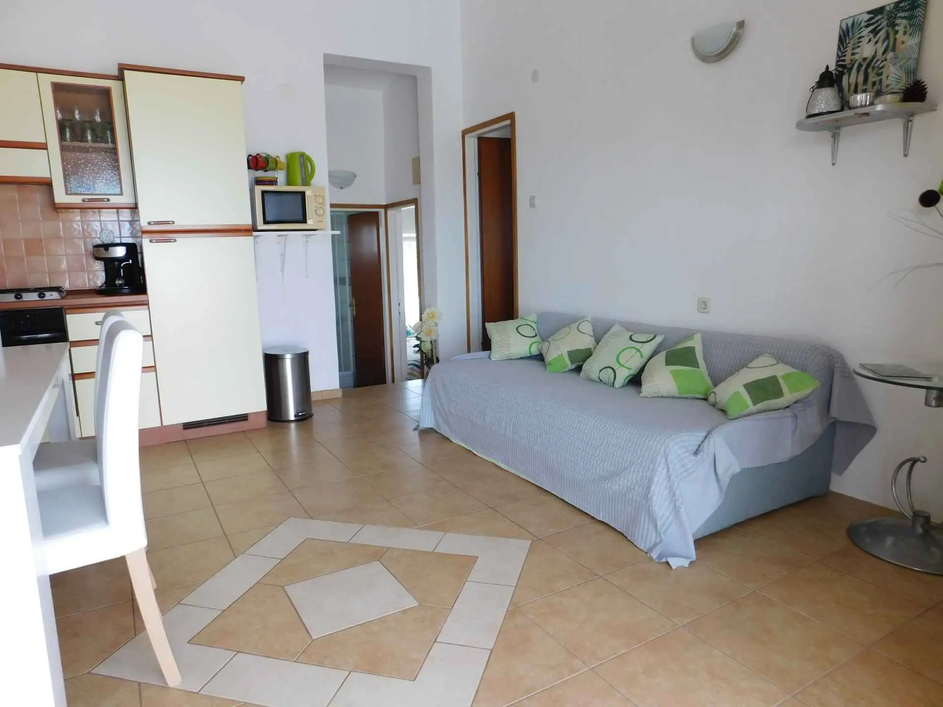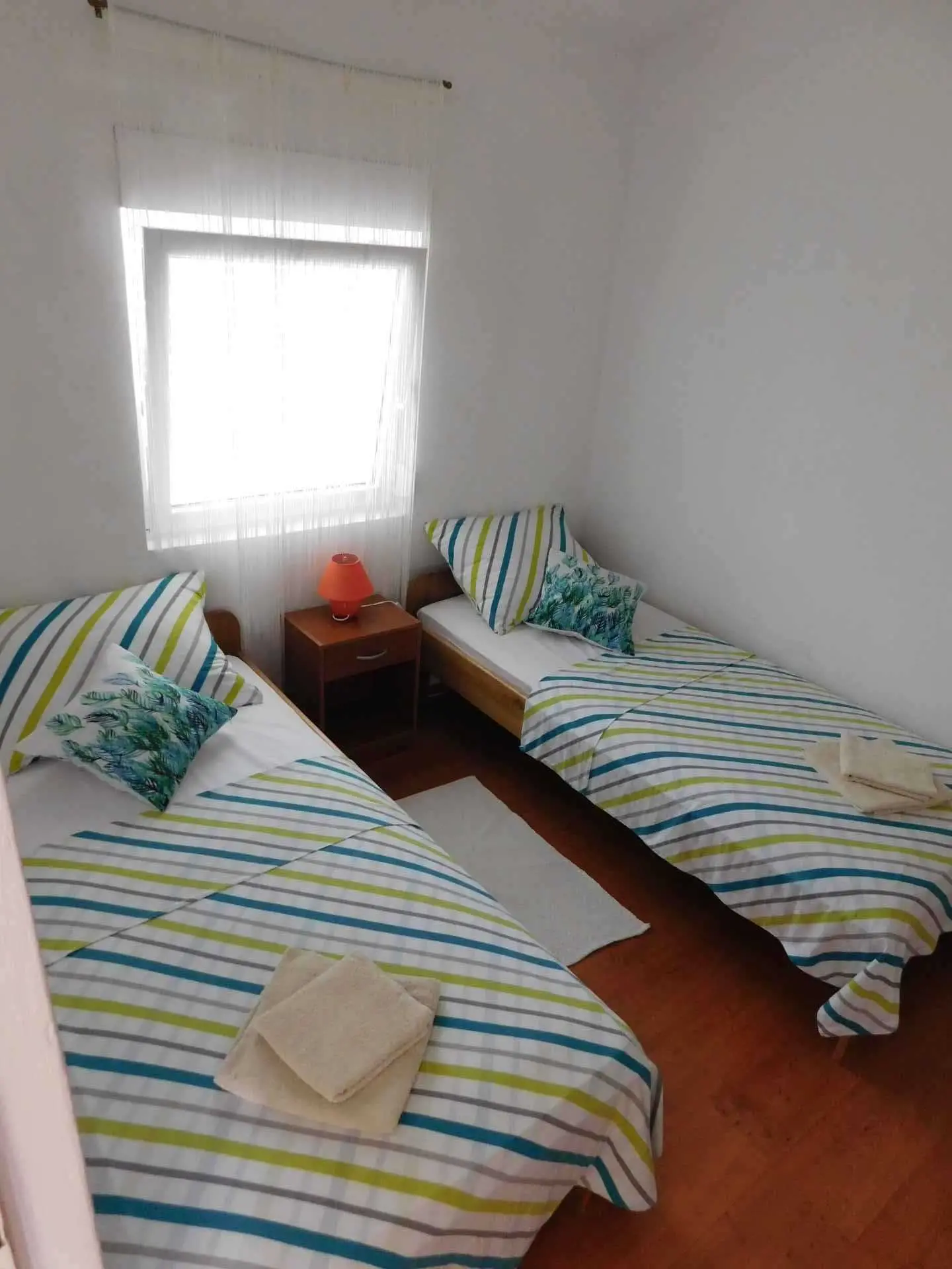 Apartament znajduje się w spokojnej wiosce rybackiej idealnej na wakacje. Idealny do relaksu. Codzienna okazja do zakupu świeżej ryby, sera, szynki i wina. Plaża jest zrobiona ze żwiru i dna morskiego jest piaszczysta, idealna dla dzieci, małego wybrzeża, czystego morza, bezpiecznego miejsca do cumowania łodzi. Duży taras o powierzchni 30 m2 z widokiem na morze, ale także zapewnia prywatność. Apartament 50 m2 z trzema sypialniami, kuchnią, jadalnią i pokojem dziennym, łazienką z toaletą i prysznicem. Mieszkanie znajduje się na pierwszym piętrze. Ma osobne wejście po zewnętrznych schodach.
