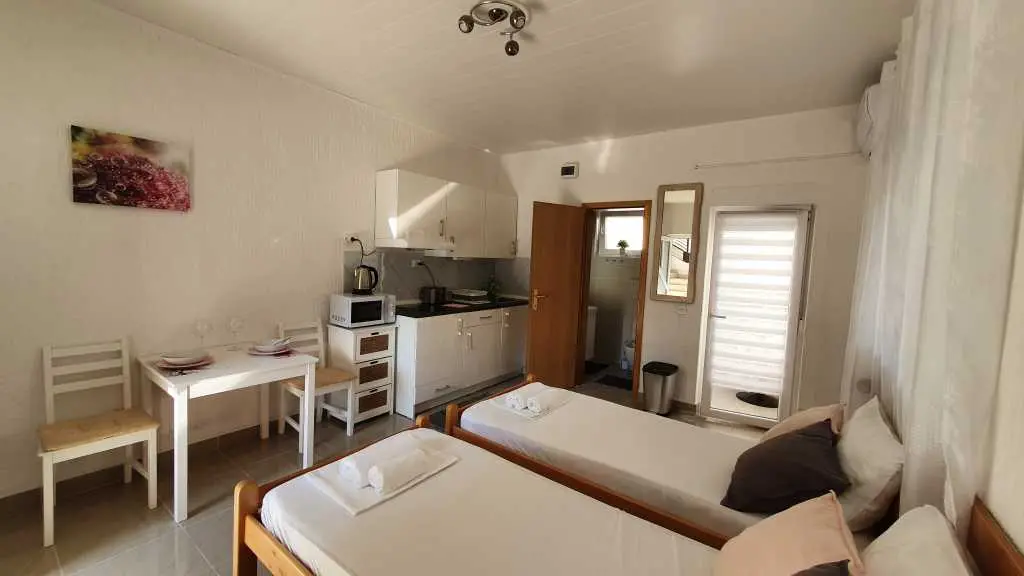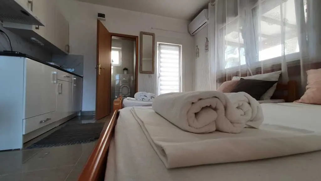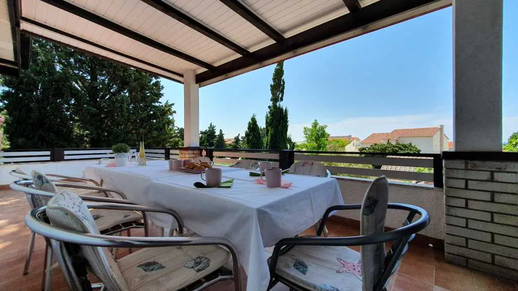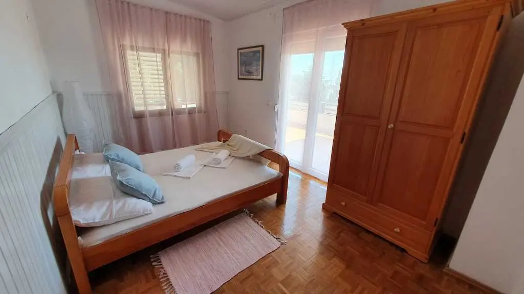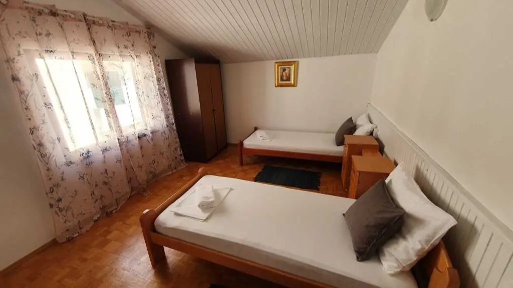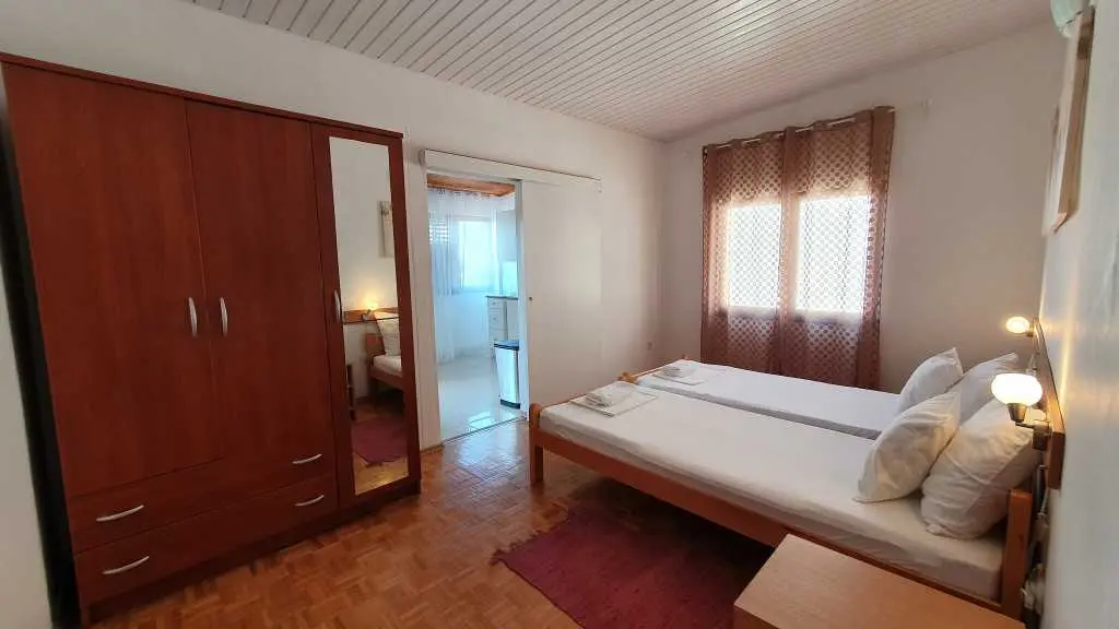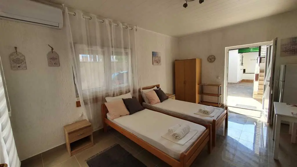Obiekt położony jest zaledwie 2 minuty spacerem od plaży i 10 minut od centrum miasta. Dom jest schowany 10 metrów od drogi, co przyczynia się do zwiększenia ciszy i spokoju, przed domem znajduje się ogród z różnymi kwiatami i owocami (figi), z których można korzystać bezpłatnie. Dla łatwiejszego prysznica po plaży dostępny jest całodobowy prysznic na zewnątrz, który jest ogrzewany energią słoneczną. Mamy 3 miejsca parkingowe, z których 2 są zadaszone, w razie potrzeby istnieje możliwość transferu gości z lub na dworzec autobusowy w Novalji. Nieruchomość znajduje się zaledwie 4 minuty od pobliskiego kantoru, piekarni, kawiarni, ruchu, restauracji oraz dworca autobusowego dla Zrce (autobus kursuje co godzinę). Sama plaża rozciąga się na 2 km, aż do końca zatoki i składa się z małych kamyczków. Pobliski większy sklep znajduje się w odległości 10 minut spacerem od miasta, w którym można dokonać zakupu, a większy sklep znajduje się na obrzeżach miasta, do którego można dojechać samochodem, jeśli planujesz zakupy spożywcze na więcej dni.