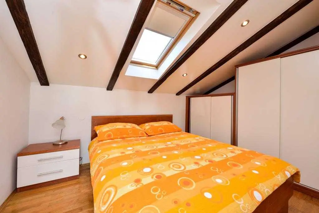 Apartamenty Ivka znajdują się w pierwszym rzędzie do morza. Oba apartamenty mają piękny widok na morze. Są one wyposażone w klimatyzację i internet. Apartament dla 4 osób składa się z kuchni z jadalnią i salonem, sypialni z podwójnym łóżkiem, sypialni z oddzielnymi łóżkami, łazienki i balkonu. Apartament dla 5 osób składa się z kuchni z jadalnią, sypialni z podwójnym łóżkiem, sypialni z podwójnym łóżkiem i łóżkiem dla 1 osoby, łazienki i dużego balkonu.