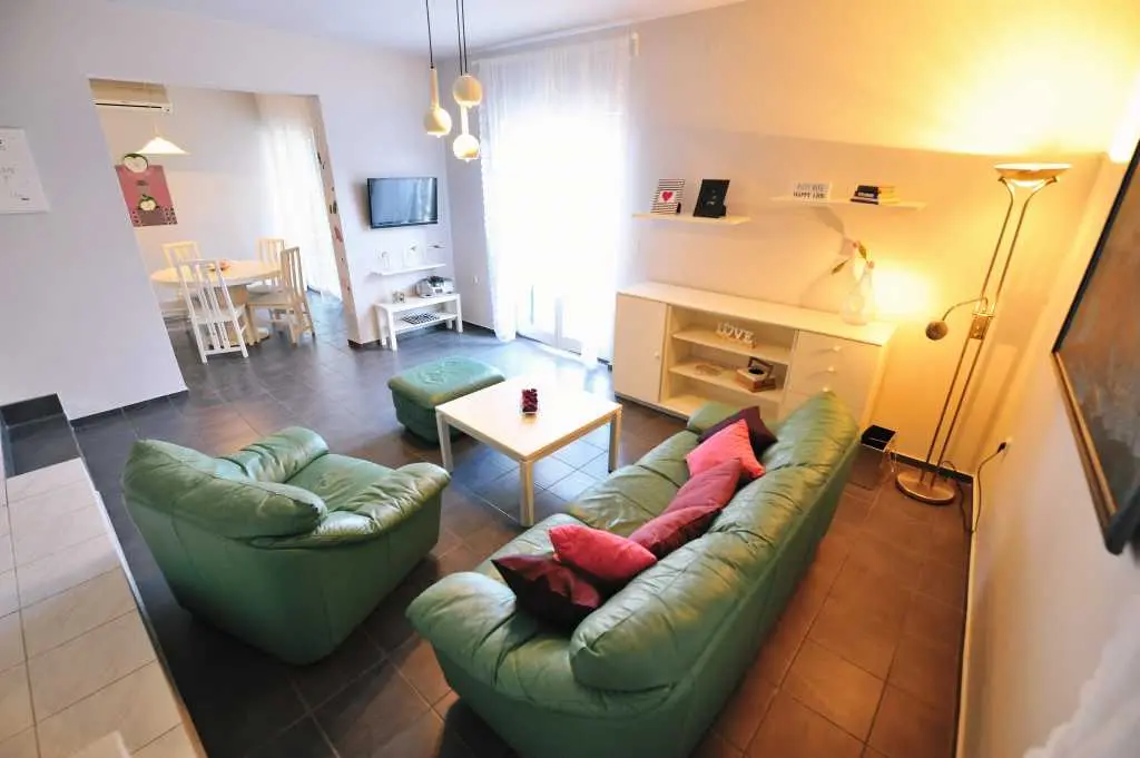 Apartament znajduje się w pobliżu Zadaru. Około 20 minut samochodem. Połączenie z autostradą jest tylko 600 m od hotelu. Naprzeciw mieszkania znajduje się sklep Tommy. Piaszczysta plaża odpowiednia dla osób w niższym wieku znajduje się około 600 m od apartamentu, ale można do niego dojechać samochodem. W centrum znajduje się także plaża dla dzieci i dorosłych. We wsi znajduje się wiele kawiarni i restauracji oraz fast foodów na plaży w kawiarni.