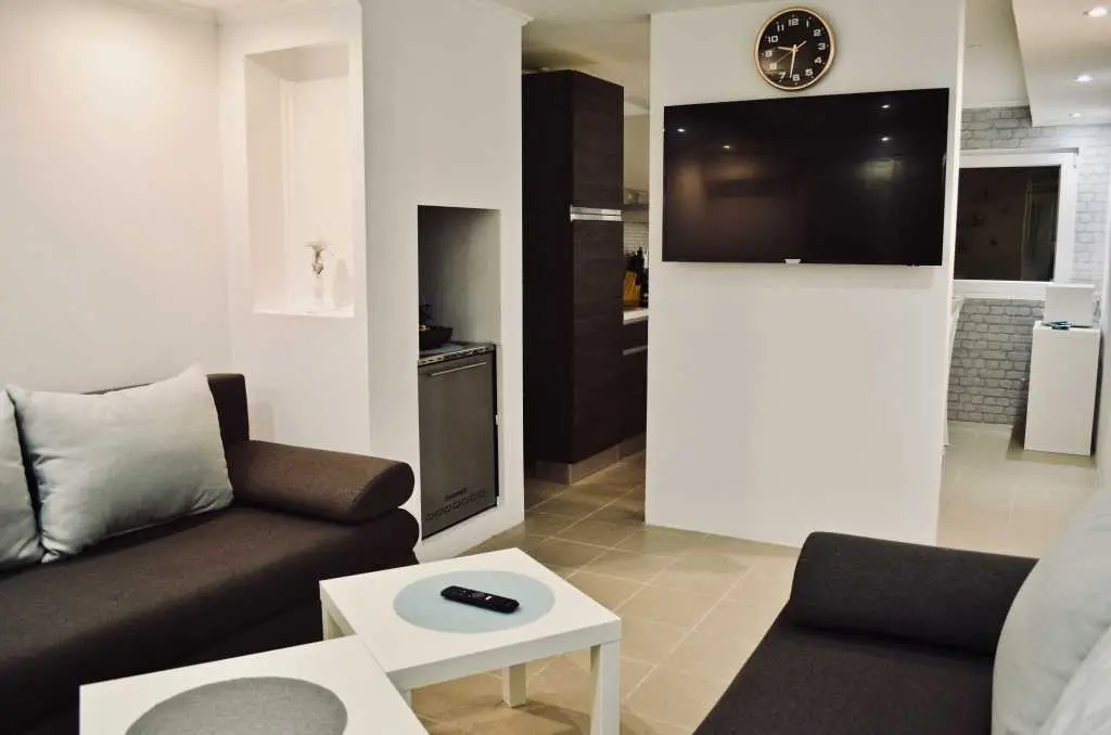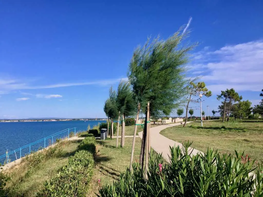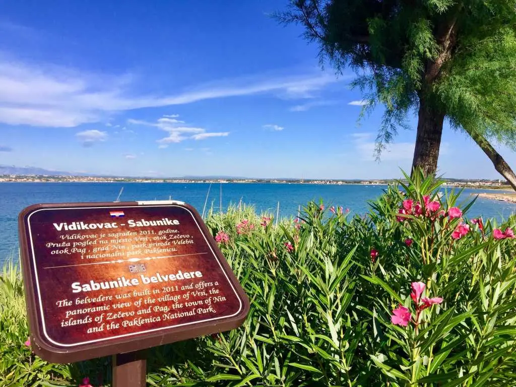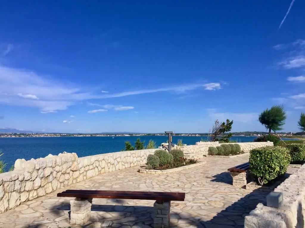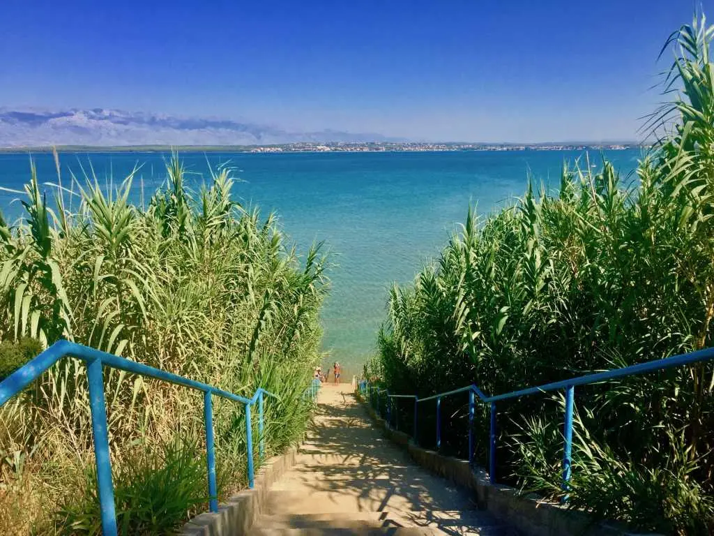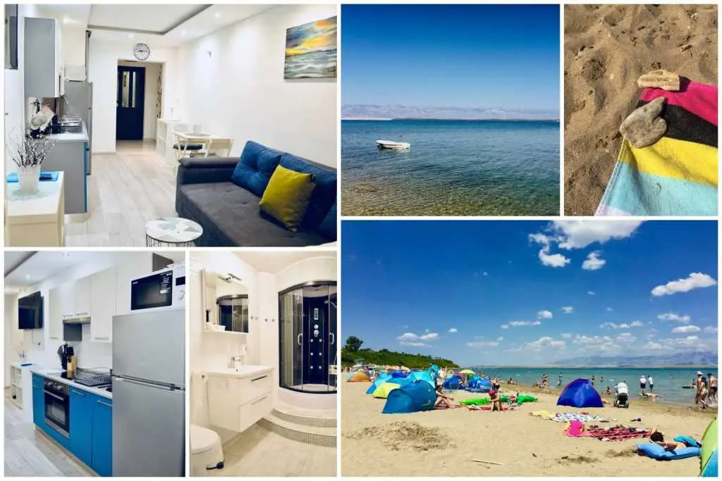 Kawalerka dla 2 osób i Apartament dla 4 osób (2 + 2) znajdują się na parterze prywatnego domu w spokojnym kurorcie turystycznym Sabunike (część półwyspu / hrabstwa / miasta Privlaka w północnej Dalmacji), znanej z piaszczystych plaż i płytkie morze. Oba apartamenty mają wejście na część zadaszonego tarasu wyposażoną w zestaw wypoczynkowy, oddzieloną od drugiego ruchomą markizą boczną, na której można cieszyć się ładną pogodą. Podczas pobytu Goście mogą również korzystać z grilla do przygotowywania posiłków oraz korzystać z prysznica na wspólnym podwórku. Odległość od najbliższej plaży Sabunike mol (Sabunike peer) wynosi 850 m (10 minut spacerem). Po jednej stronie paru znajdują się małe zatoczki, po drugiej natomiast plaża Królowej (1,2 km) i błoto lecznicze (1,5 km). Na te plaże można dojść w cieniu pobliskiej promenady ciągnącej się wzdłuż Sabunike, po czym można kontynuować spacer wzdłuż wybrzeża. W sezonie letnim w Sabunike działa mały targ, a kilka restauracji i kawiarni jest otwartych, aw odległości 2-2,5 km kilka supermarketów jest otwartych przez cały rok.