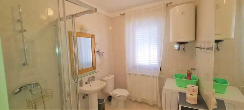 Villa Casa Mia znajduje się w Sabunike, zaledwie 200 m od morza i głównej piaszczystej plaży, zwanej lokalnie „Kraljicina plaza” lub znaną na całym świecie „Queen Beach”. Sabunike to przedmieście Privlaki i znajduje się w lagunie Nin. Ta atrakcyjna okolica to najwspanialszy klejnot Riwiery Zadar. Villa Casa Mia oferuje 3 w pełni wyposażone, nowoczesne apartamenty. Dwa duże apartamenty mają 3 pokoje z podwójnym łóżkiem, w pełni wyposażoną kuchnię, jadalnię i salon, 2 duże łazienki i 2 duże tarasy z pięknym widokiem, ogród i duży odkryty basen z podgrzewaną wodą (44 metry kwadratowe). Wszystkie apartamenty mają klimatyzację, płaski telewizor, Netflix, Sat i bezpłatny, płaski szybki internet Wlan dostępny wszędzie. Kolejne mniejsze apartamenty są prawie takie same, ale jeden ma 1 pokój z podwójnym łóżkiem. W ogrodzie znajduje się kominek, który jest zawsze do dyspozycji oraz duży kryty, chroniony i podgrzewany basen, który zapewni Ci doskonały komfort i prywatność podczas wakacji. W domu znajduje się również zadaszony parking oraz bezpłatne miejsca do cumowania łodzi na morzu dla gości. W pobliżu znajduje się wiele dobrych restauracji, centrów nurkowych i piękne piaszczyste plaże. Villa Casa Mia łączy w sobie to, co najlepsze w śródziemnomorskiej atmosferze i nowoczesne udogodnienia, aby stworzyć naprawdę niezapomniane wakacje. Położone wzdłuż malowniczej laguny Nin, będziesz idealnie przygotowany na niezapomniane wakacje w słońcu. Przestronna i stylowa nadmorska rezydencja Villa Casa Mia stała się również ulubionym miejscem rodzin i młodzieży. Ochłodzić się w dużym basenie w domu lub w krystalicznie czystym morzu, które znajduje się zaledwie 200 m od domu, opalanie się na piaszczystej plaży lub tuż przed domem, pływanie, nurkowanie, wszelkiego rodzaju sporty wodne, żeglarstwo, wędkarstwo, jogging, jazda na rowerze i wiele innych codziennych zajęć jest zawsze dostępnych. Centrum miasta Nin oddalone jest o zaledwie 5 km, a centrum miasta Zadar o zaledwie 16 km.