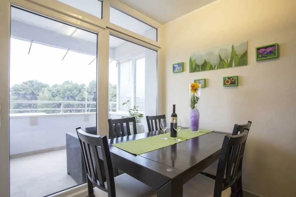 Luksusowy apartament jest idealnie zlokalizowany dla rodzin i młodych ludzi, którzy chcą czuć się komfortowo i jest otoczony najpiękniejszymi plażami, lasami, szlakami spacerowymi, obiektami sportowymi, placami zabaw, barami plażowymi i wspaniałymi restauracjami. Są supermarkety, centrum handlowe, rynek spożywczy i wszystko, czego potrzebujesz. Możesz dojść do miasta, jest bardzo blisko. Ma ładne wnętrze, które jest wyposażone we wszystko, co niezbędne, ma 3 sypialnie, 2 łazienki, przedpokoje, duży gabinet, kuchnię, salon, jadalnię i wspaniały taras z pięknym widokiem na las i morze. Z przodu mamy również bezpłatne miejsca parkingowe i otwarte garaże. Goście mają dostęp do ścieżek do joggingu, plaż, ścieżek spacerowych, sklepów, piekarni, apteki, kawiarni, barów na plaży, barów z przekąskami, wypożyczalni rowerów, restauracji, stadionu, centrum urody, siłowni, dworca autobusowego, klubów nocnych... W w apartamencie mamy tablicę, na której jest napisane gdzie iść, co zobaczyć i gdzie zjeść. Zawsze też organizuję wycieczki jednodniowe i polecam to, co najlepsze w Puli i na Istrii. Jeśli potrzebujesz jazdy z lotniska, daj mi znać.