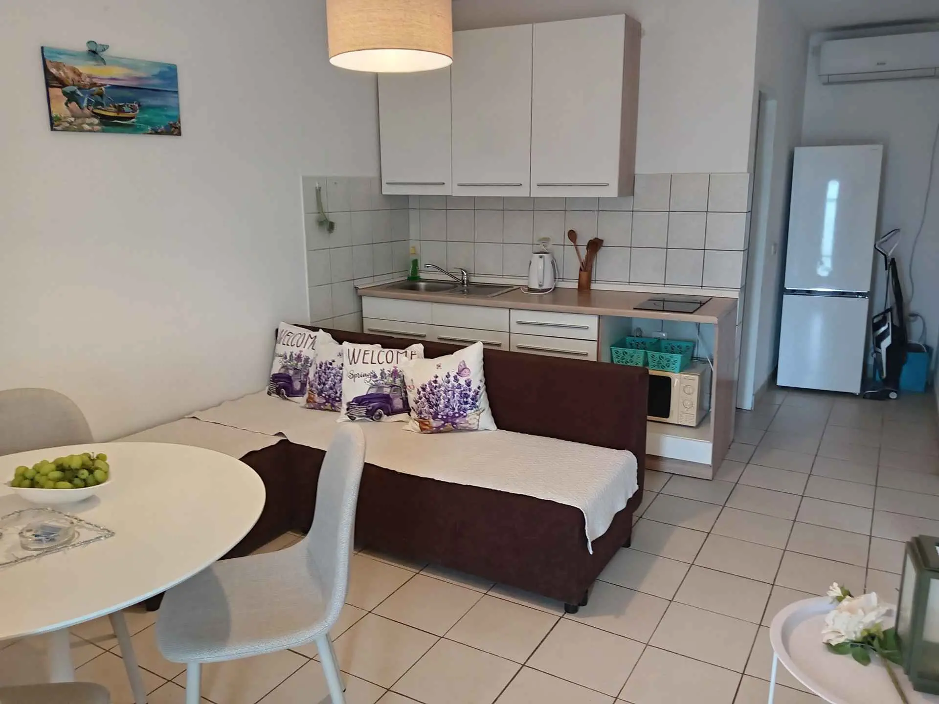 Apartamenty Kristina znajdują się w spokojnej części Rogoźnicy. Składają się z dwóch jednostek na pierwszym piętrze: niebieskiego i czerwonego na drugim piętrze. Każdy apartament ma dwie sypialnie, salon z kuchnią, łazienkę o łącznej powierzchni 45 m2 i taras z widokiem na morze w sumie 20 m2. Apartamenty są wyposażone we wszystko, czego potrzebujesz na przyjemne wakacje. W porozumieniu z właścicielem znajduje się pralnia, a jeśli przebywasz dłużej niż 15 dni, pościel zmieniana jest co tydzień. Masz również możliwość korzystania z roweru, ponieważ wypożyczalnia rowerów znajduje się tuż obok apartamentu. Każdy gość jest mile widziany z drinkiem powitalnym i małym małym prezentem przed wyjazdem. Przyjdź i przeżyj.