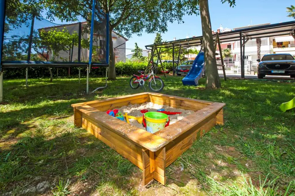 Nasz dom położony jest w bardzo spokojnej okolicy, zaledwie 5 minut spacerem od plaży (Cuvi – Villas Rubin, Skaraba, Punta corrente, Zlatni rt) i 10 minut od Centrum i. Posiada duży ogród i duży zamknięty parking. Mamy 10 rowerów, garaż, pralkę, grill i sieć bezprzewodową dla naszych gości. Wszystko GRATIS! W pobliżu naszego domu (200 m) znajduje się duży supermarket, bankomat, agencja turystyczna, kawiarnia, restauracja, pizzeria,...