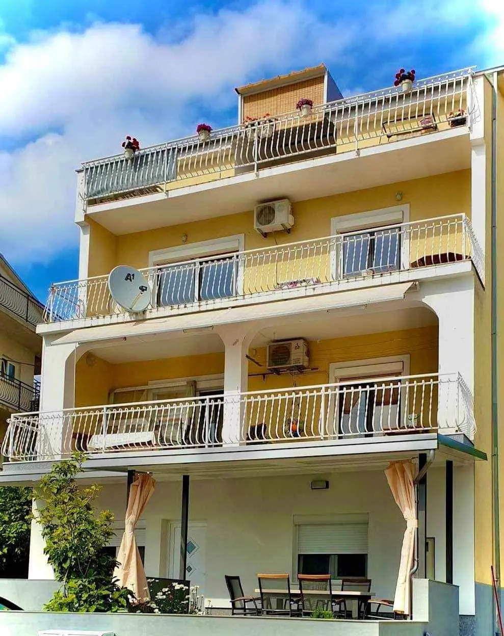 Apartament 4*, dla 4+2 osób znajduje się na parterze domu rodzinnego z dużym oddzielnym tarasem i częściowym widokiem na morze. W pełni wyposażony, klimatyzacja, internet, parking. Znajduje się około 300 m od morza, plaży i centrum miasta. Składa się z dwóch sypialni dwuosobowych (jedna z łóżkiem podwójnym i jedna z dwoma pojedynczymi łóżkami), salonu, wyposażonej kuchni z jadalnią, łazienki i oddzielnej toalety. Na podwórku znajduje się parking dla 1 samochodu. Apartament typu studio znajduje się na parterze (wysoki parter) domu rodzinnego. Posiada kuchnię, łóżko 160x200 cm, łazienkę, klimatyzację i mały taras przed studiem. Wspólny grill. Apartament 3*, Lea 1 znajduje się na 2 piętrze domu rodzinnego. Posiada duży taras z widokiem na morze i Selce. W pełni wyposażony, klimatyzacja, internet, parking. Znajduje się około 300 m od morza, plaży i centrum. Składa się z dwóch sypialni dwuosobowych (jedna z dodatkową rozkładaną sofą), salonu, wyposażonej kuchni, łazienki. Na podwórku znajduje się parking dla 1 pojazdu.