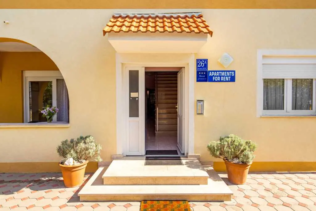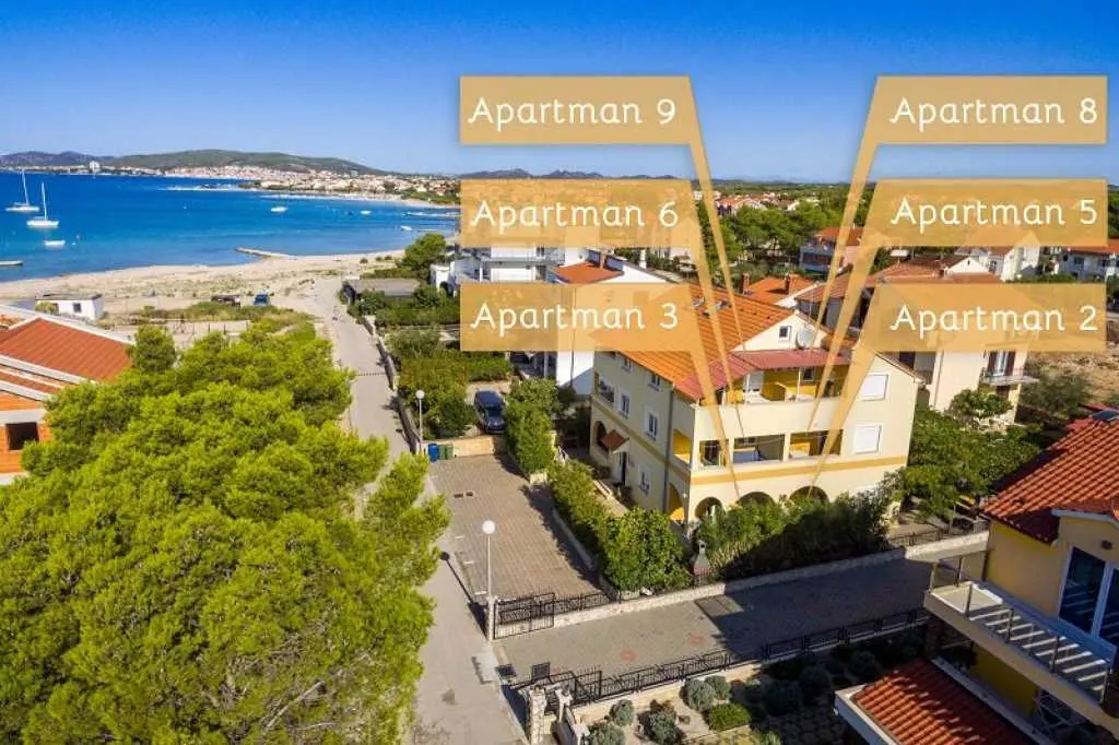 Apartamenty w Vodice (Srima) trzygwiazdkowe, pierwszy rząd do morza (50m do piaszczystej plaży), dwu- i trzypokojowe apartamenty, w pełni umeblowane (klimatyzacja, tv, internet WiFi). Każdy apartament posiada kuchnię, łazienkę i balkon z widokiem na morze. Istnieje również grill na świeżym powietrzu.