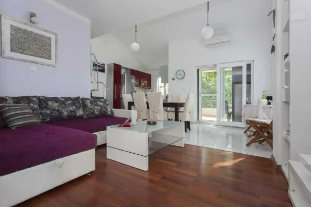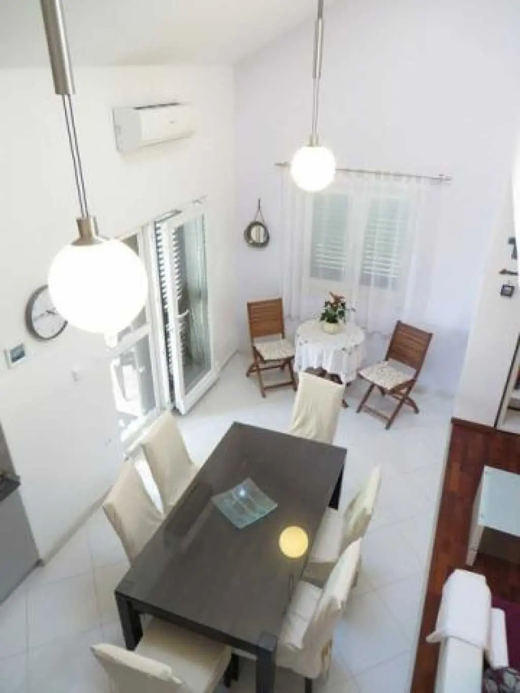 Nowocześnie urządzony apartament na pierwszym piętrze prywatnego domu w małej miejscowości morza Srima koło Vodice. Zakwaterowanie znajduje się w odległości 100 m od pięknej, piaszczystej plaży i 200 m od centrum miejscowości Srima. Ten 80 m2 apartament posiada 2 sypialnie, pokój dzienny, kuchnia, dwie łazienki, strych i 14 m2 taras. Jest w pełni wyposażone w nowe i wysokiej jakości mebli i urządzeń (TV sat, Internet, telewizor LCD, pralka, suszarka do włosów, kuchenka mikrofalowa, podgrzewacz wody, dwa klimatyzatory ...). Srima znajduje się w pięknej miejscowości Vodice (2 km), słynnej miejsce na letni wypoczynek z wszystkimi niezbędnymi udogodnieniami dla wspaniałe wakacje.