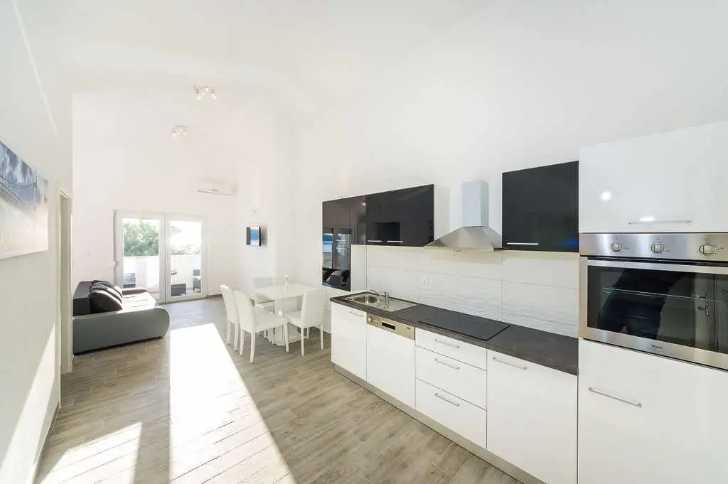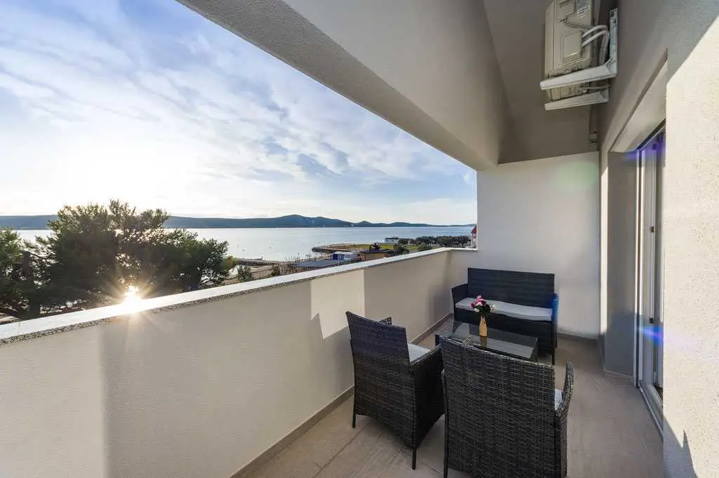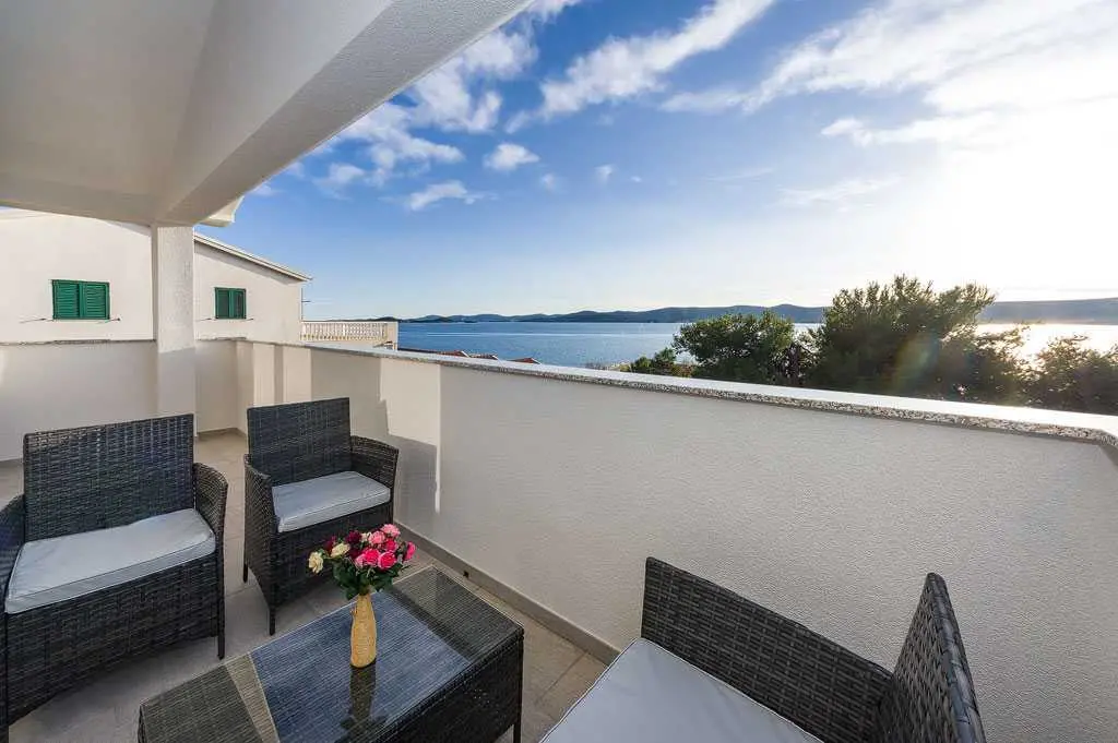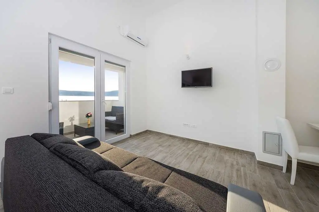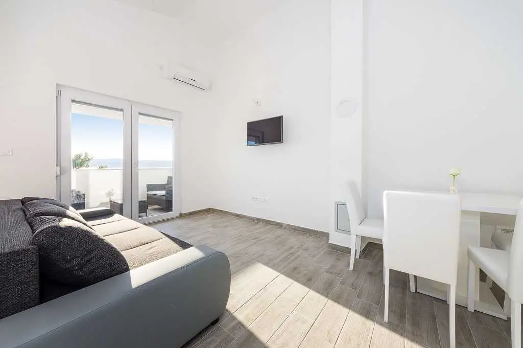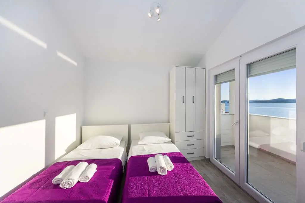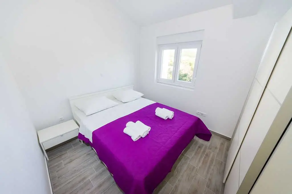 Jest to przestronny apartament na pierwszym piętrze z ładnym salonem, jadalnią ze stołem dla 5 osób, w pełni wyposażoną kuchnią, 2 sypialniami i nowoczesną łazienką. Największą zaletą tego apartamentu jest położenie nad wodą, ponieważ wystarczy kilka kroków, aby dotrzeć do pobliskiej piaszczystej plaży. Mieszkanie jest idealne dla rodziny z dziećmi. Istnieje również możliwość wynajmu małej łodzi o wielkości 4 m, a jeśli masz własną łódź, możesz wynająć miejsce do cumowania łodzi przed domem. Goście mogą korzystać ze sprzętu do grillowania we wspólnym ogrodzie przed budynkiem.