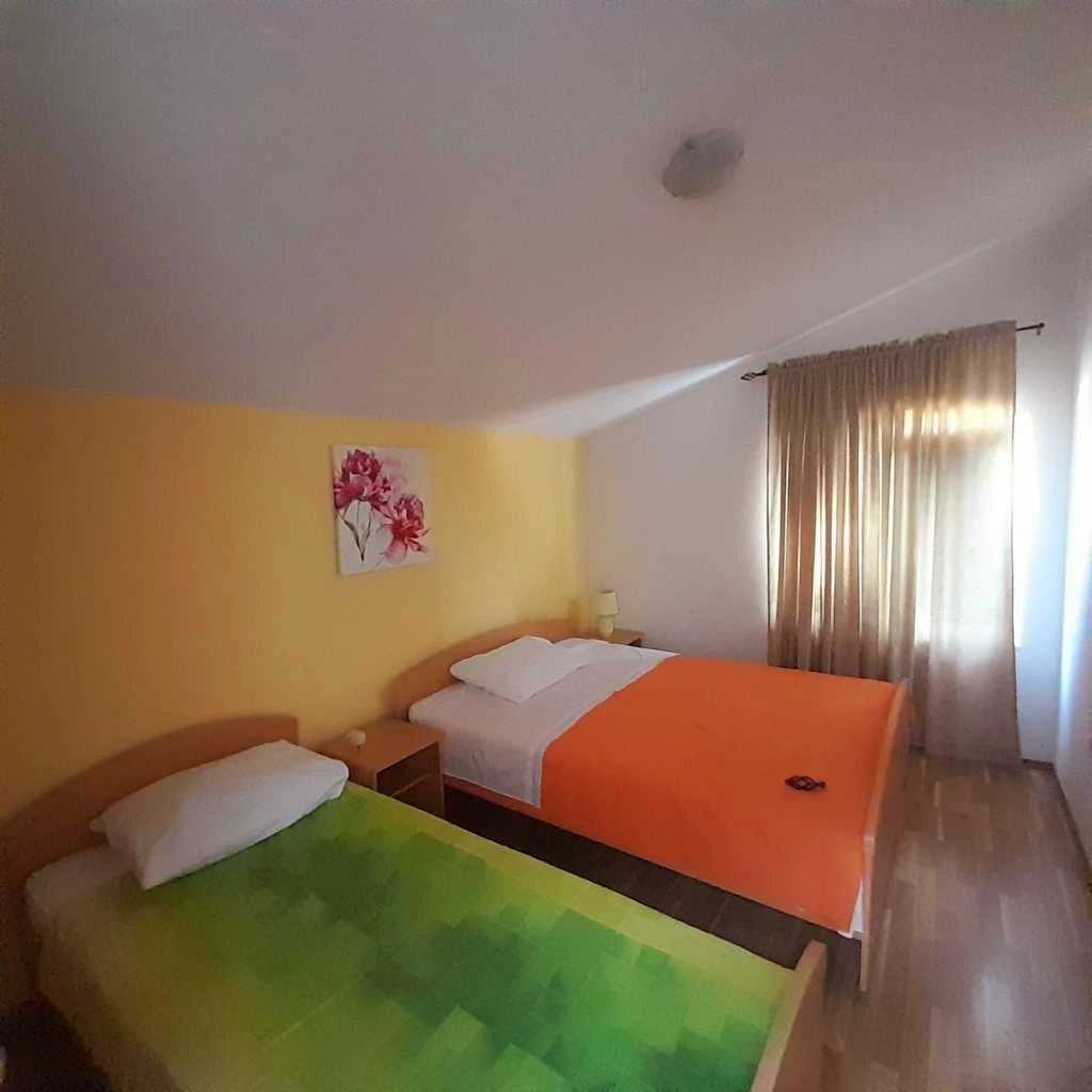 Szanowni Państwo, Apartamenty Zlata znajdują się w małej wiosce Turanj niedaleko Biogradu n/m. W obiekcie znajdują się trzy apartamenty (dwupokojowe, jednopokojowe oraz studio) mogące pomieścić łącznie 10 osób. Obiektem zarządza gospodarz znajdujący się na parterze, na którym możesz polegać we wszystkich swoich potrzebach. W tym miejscu dominują żwirowe i piaszczyste plaże, które są przestronne i nieprzepełnione w sezonie. Wieczorem jest przyjemny spacer do St. Philip St. James nad morzem, które oddalone jest o zaledwie 1500 metrów. Przyjdź i odpocznij w apartamentach Zlata