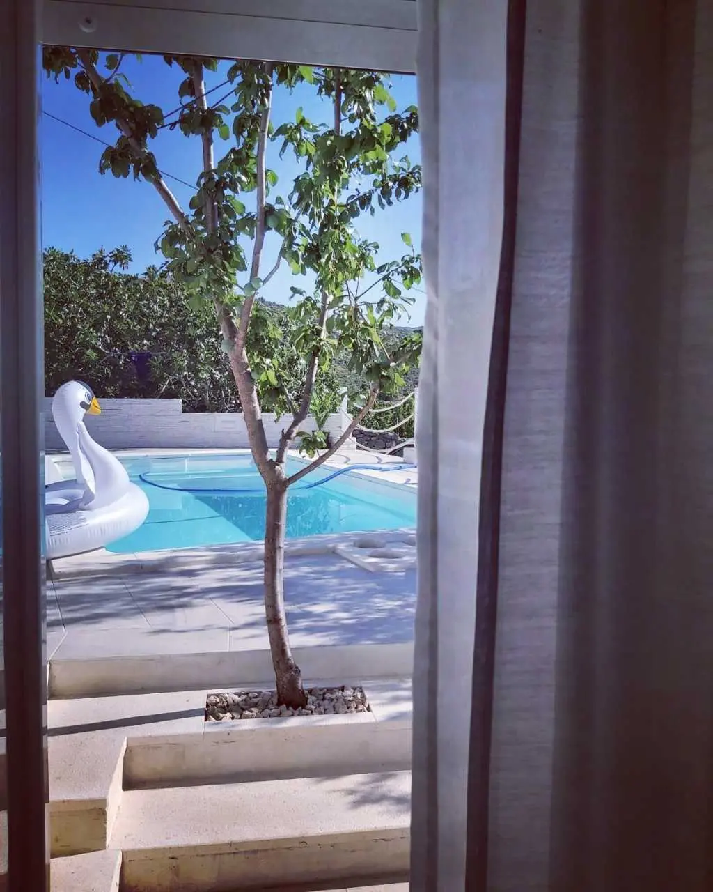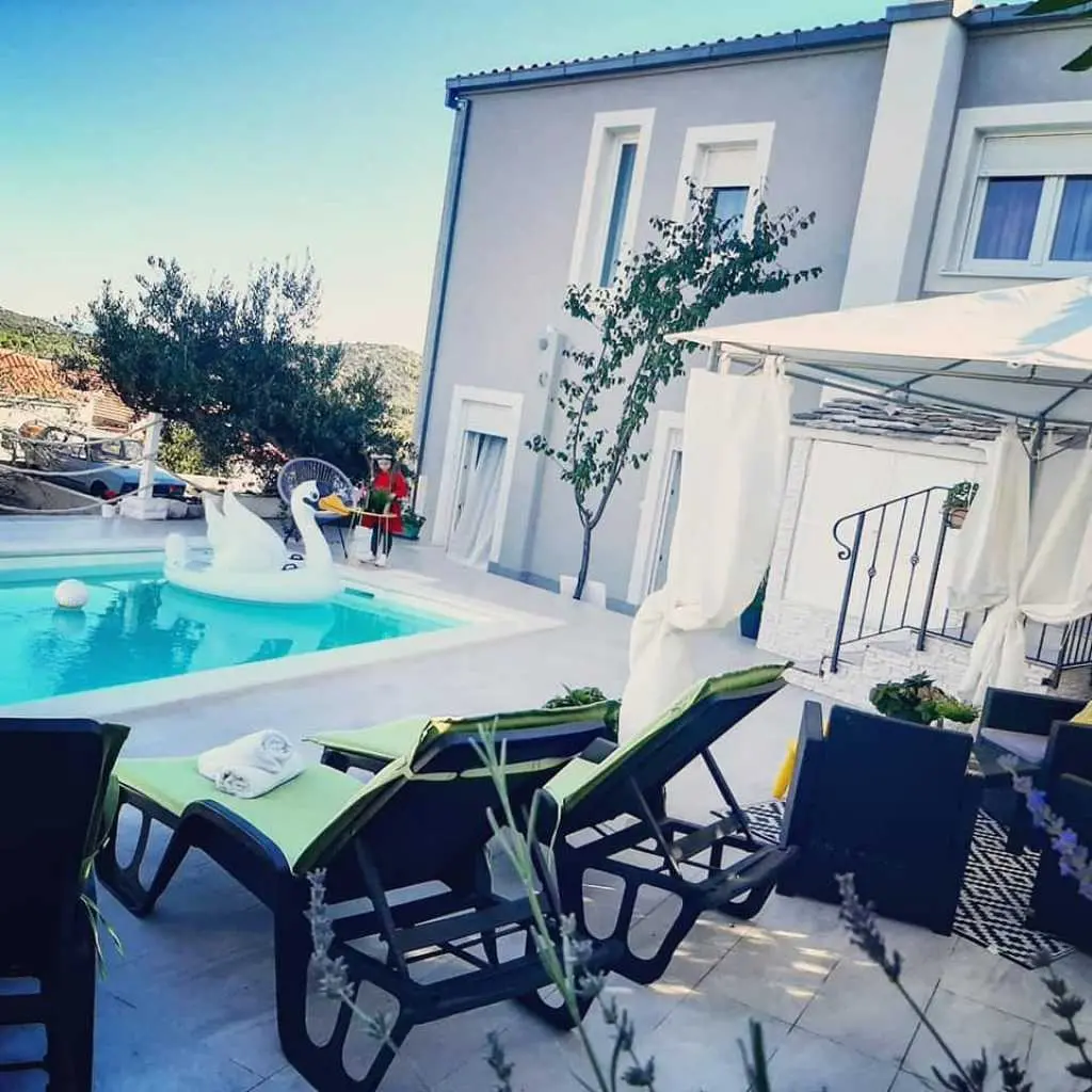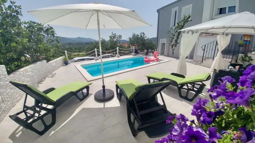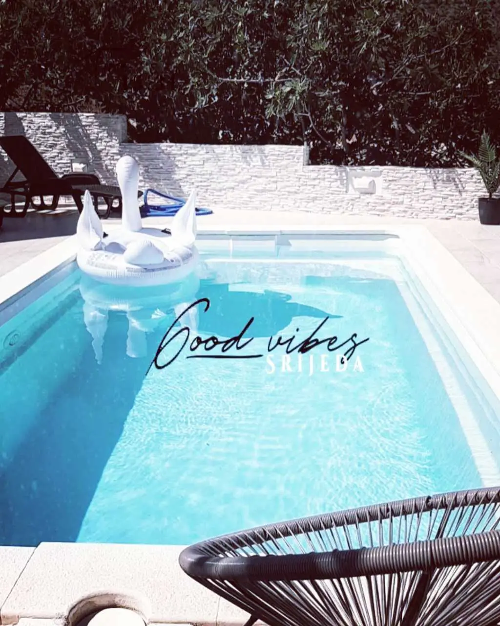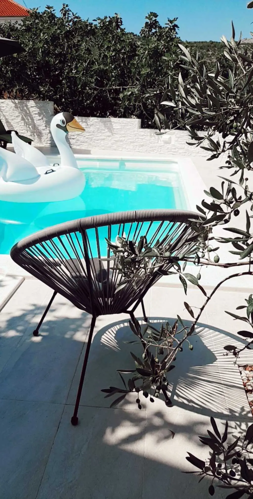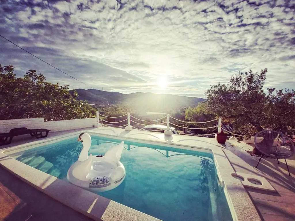 Mieszkanie jest idealne na wakacje z dziećmi w ciszy, ciszy i naturze. Lokalizacja apartamentu jest idealna na jednodniowe wycieczki do miejsc, w których można podziwiać wszystkie piękno wybrzeża Dalmacji. Wiele pięknych miejsc i miejsc jest tylko 10 minut (Trogir, Rogoznica), 15 minut (Primošten), 30-35 minut (Split, Šibenik) do 1 - 1,5 godziny (Zadar, Omiš, Park Narodowy Krka lub Kornati) samochodem . Możesz także odwiedzić wyspy dalmatyńskie i cieszyć się wszystkim, co oferuje Chorwacja. Apartament znajduje się na parterze domu rodzinnego i ma własne wejście, zadaszony balkon oraz bezpośrednie wyjście na taras z prywatnym basenem - tylko dla gości. Składa się z kuchni, wspólnego salonu, kabiny prysznicowej i dwóch sypialni z dużymi podwójnymi łóżkami. W części dziennej znajduje się rozkładana sofa, dzięki czemu apartament może pomieścić 4 + 2 osoby. Apartament wyposażony jest w: klimatyzację, lodówkę, zmywarkę, naczynia, mikrofalówkę, ekspres do kawy, czajnik, ręczniki, pościel, pralkę, suszarkę do włosów, smart TV, wifi, basen, leżaki, parasole, meble ogrodowe, grill, parking przed domem dodatkowy materac lub łóżeczko dziecięce na życzenie. Ponieważ w pobliżu znajdują się tylko 4 domy rodzinne, goście mogą cieszyć się prywatnością. Zapraszamy do podziwiania wschodu słońca i widoku pobliskich zielonych wzgórz z basenu oraz do liczenia gwiazd na najjaśniejszym gwiaździstym niebie.