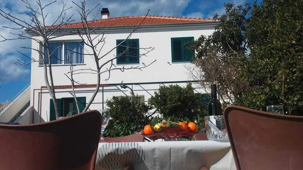 Dom nad morzem dla dwóch rodzin lub grupy przyjaciół z dwiema aplikacjami każda z dwoma sypialniami. Duże podwórko i taras z przepięknym widokiem na morze zapewnią Państwu wymarzone wakacje. Parking jest za domem. Ten dom został niedawno odnowiony, ma ac, wifi