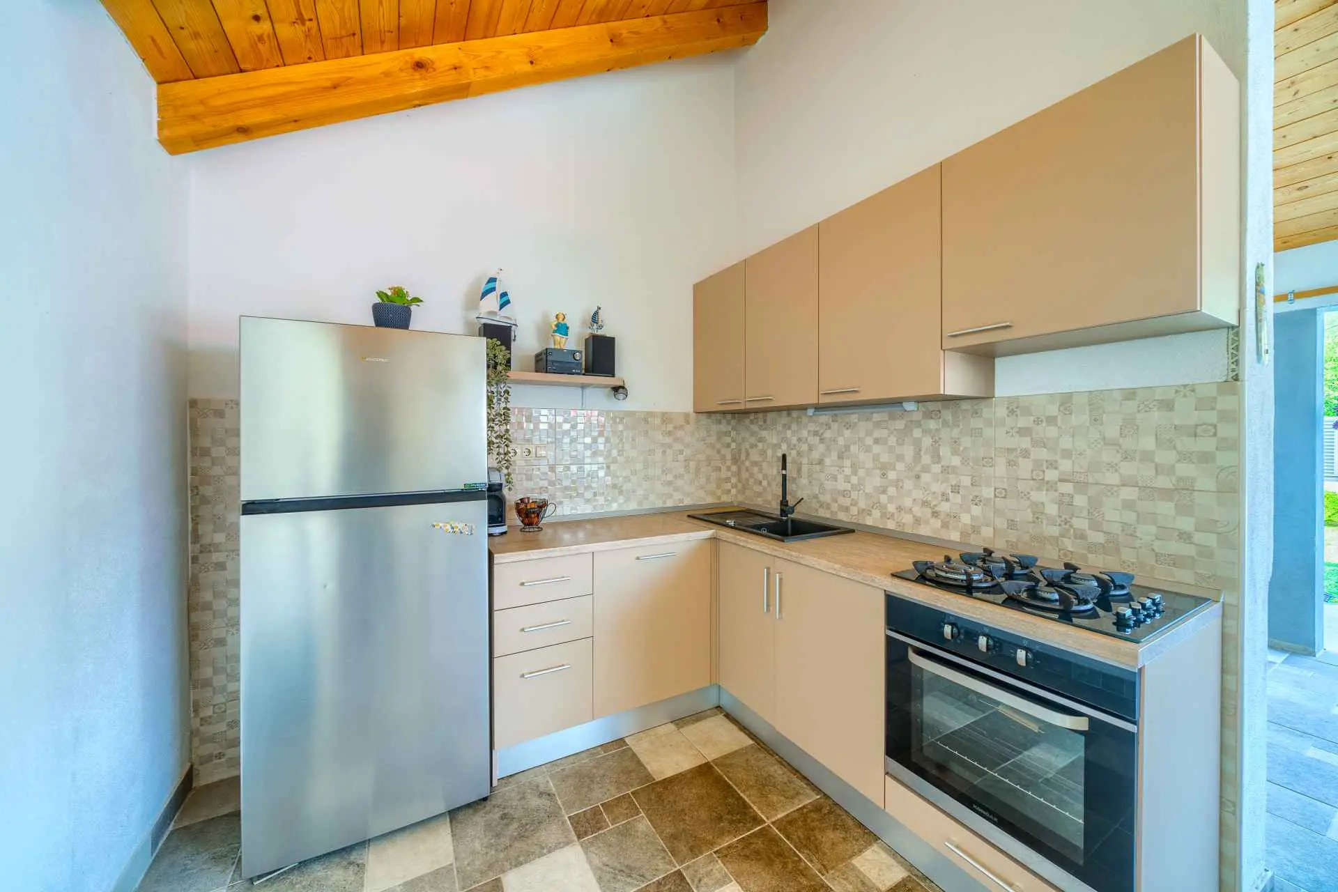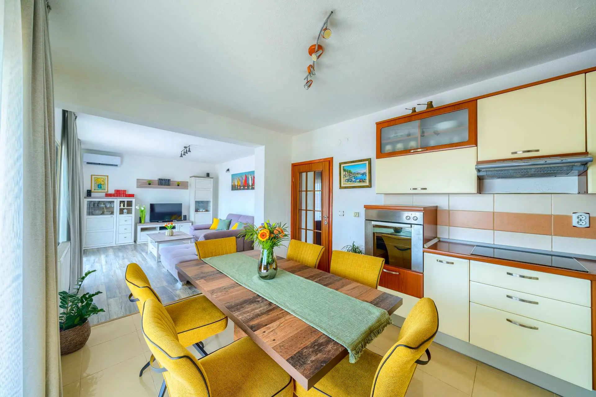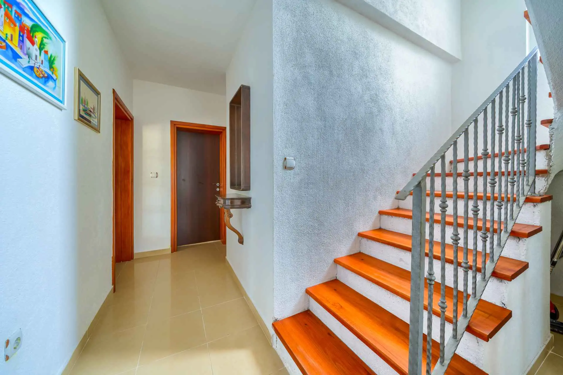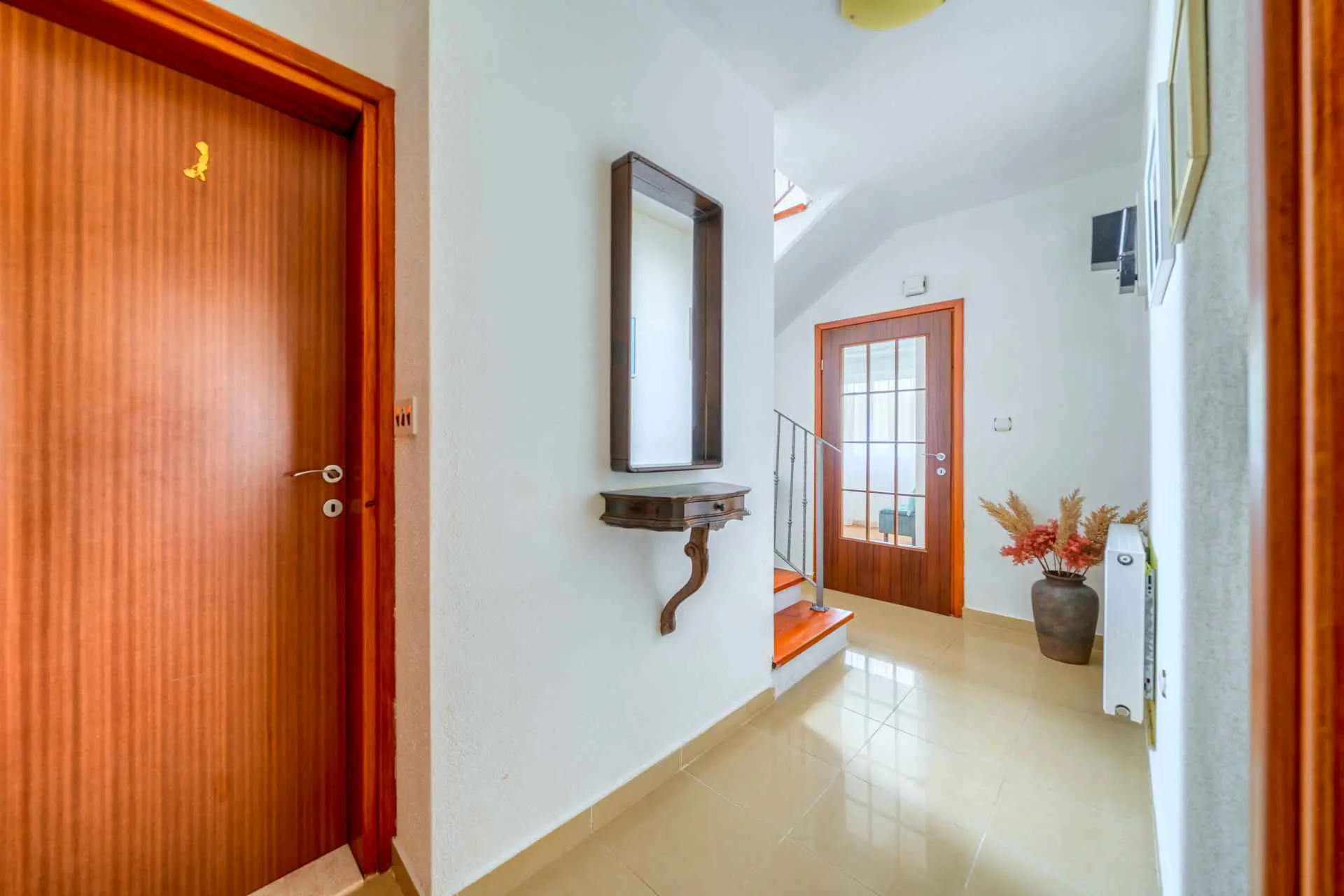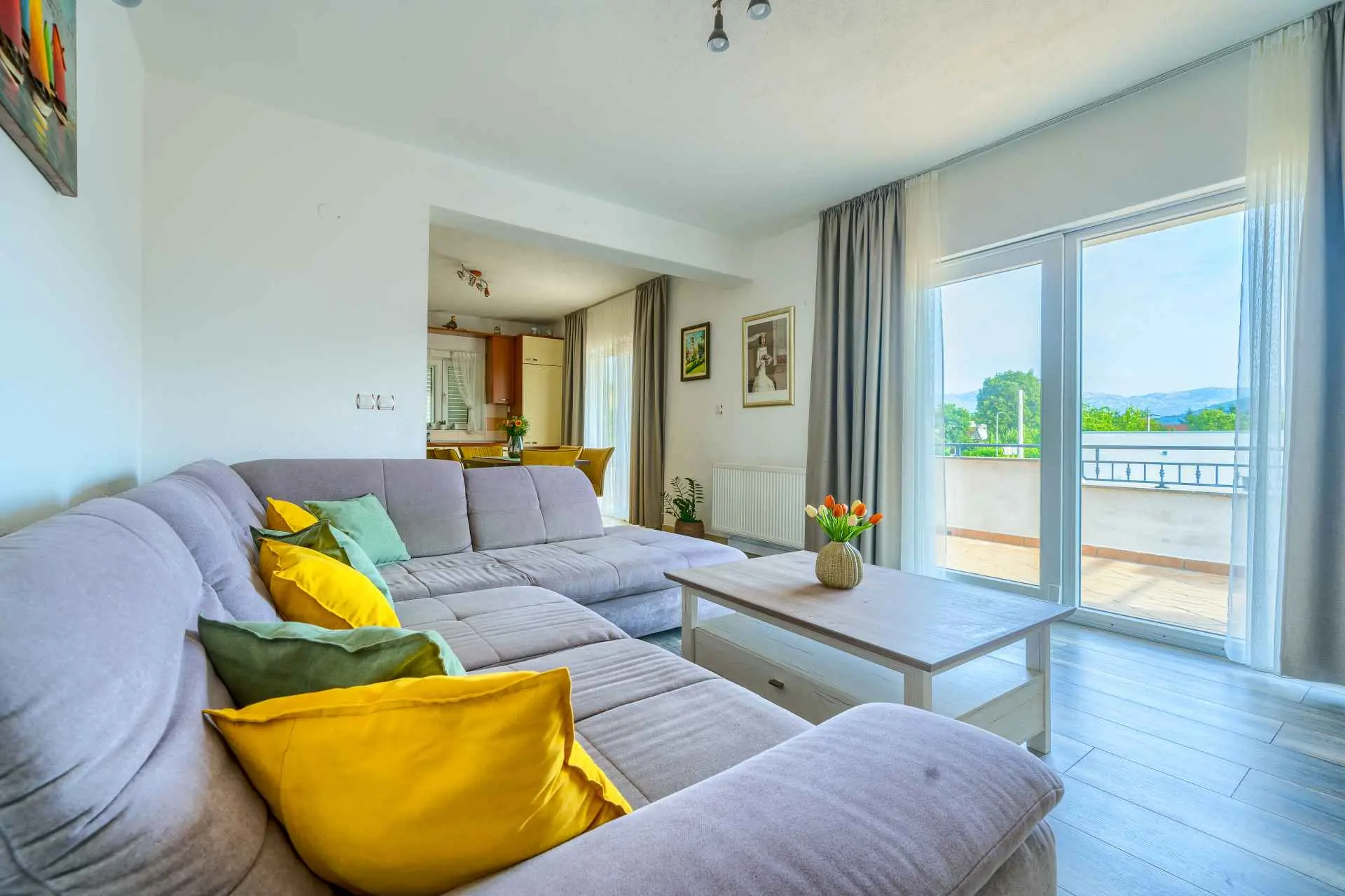 Nieruchomość jest w całości ogrodzona z zagospodarowanym ogrodem z zielonym trawnikiem. W centralnej części posesji znajduje się basen z leżakami, prysznic na świeżym powietrzu, kuchnia letnia (która wyposażona jest w kuchenkę, lodówkę, zmywarkę, czajnik, kostkarkę do lodu, barek do jedzenia, gotowania...) , grill dalmatyński, zestaw do spożywania posiłków, odpoczynku i toaleta. To właśnie w tej części posiadłości będziesz cieszyć się spotkaniami towarzyskimi. Odpręż się w najpiękniejszych chwilach spędzając czas z rodziną i przyjaciółmi, podczas gdy Twoje dzieci będą beztrosko bawić się na podwórku i pływać w basenie. Na pierwszym piętrze znajduje się duży salon z jadalnią i kuchnią z widokiem na basen i ogród, sypialnia z dużym łóżkiem oraz łazienka. na poddaszu znajdują się trzy ładnie urządzone pokoje, z czego dwa mają wyjście na balkon i łazienkę. Dom jest klimatyzowany, wyposażony w TV i Internet oraz posiada własny taras z leżakiem, na którym można cieszyć się spokojnym przebudzeniem, pięknym wschodem lub zachodem słońca, popijając gorącą kawę lub długi orzeźwiający napój.