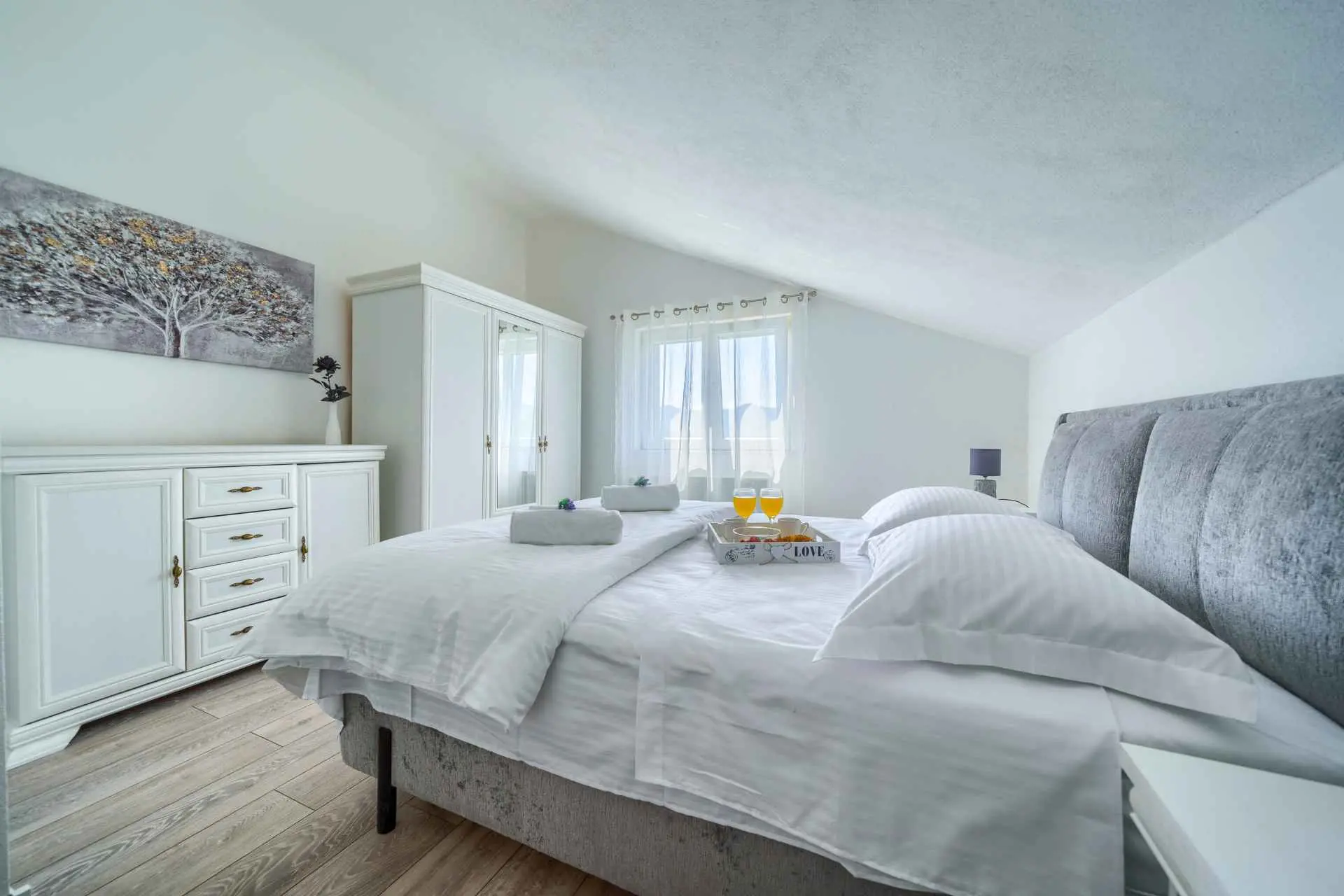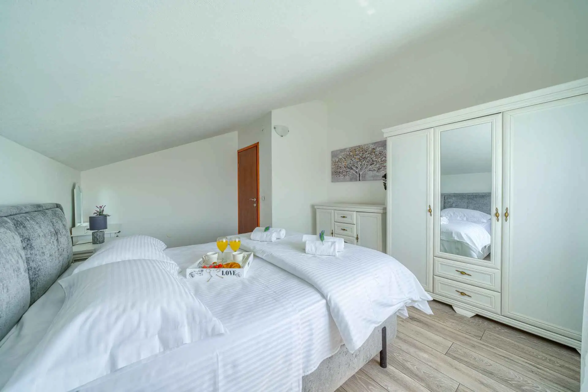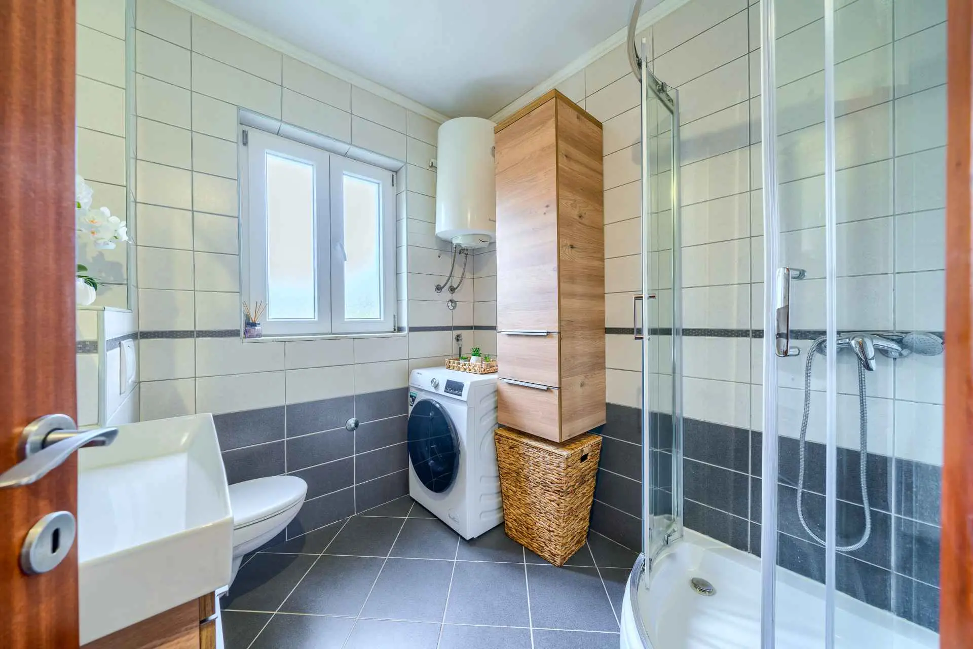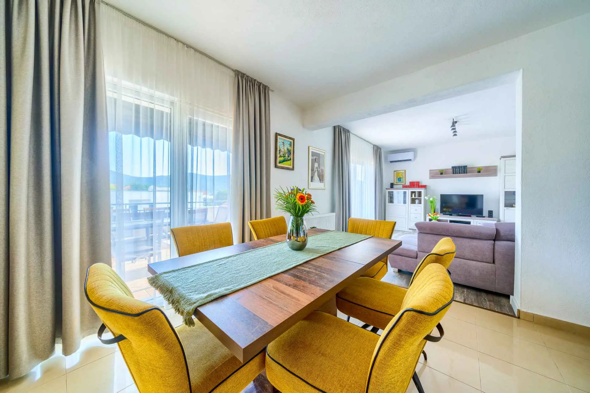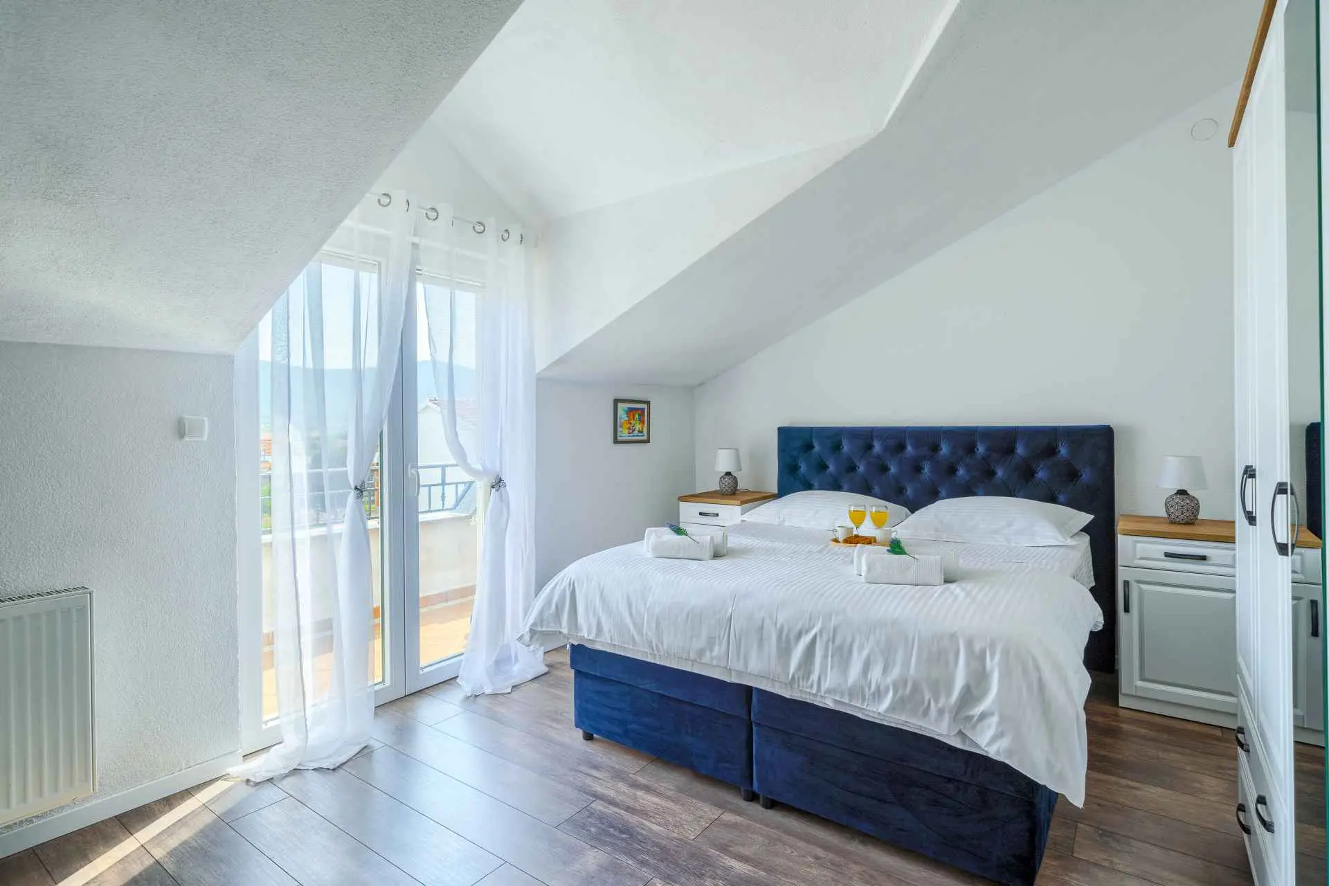 Nieruchomość jest w całości ogrodzona z zagospodarowanym ogrodem z zielonym trawnikiem. W centralnej części posesji znajduje się basen z leżakami, prysznic na świeżym powietrzu, kuchnia letnia (która wyposażona jest w kuchenkę, lodówkę, zmywarkę, czajnik, kostkarkę do lodu, barek do jedzenia, gotowania...) , grill dalmatyński, zestaw do spożywania posiłków, odpoczynku i toaleta. To właśnie w tej części posiadłości będziesz cieszyć się spotkaniami towarzyskimi. Odpręż się w najpiękniejszych chwilach spędzając czas z rodziną i przyjaciółmi, podczas gdy Twoje dzieci będą beztrosko bawić się na podwórku i pływać w basenie. Na pierwszym piętrze znajduje się duży salon z jadalnią i kuchnią z widokiem na basen i ogród, sypialnia z dużym łóżkiem oraz łazienka. na poddaszu znajdują się trzy ładnie urządzone pokoje, z czego dwa mają wyjście na balkon i łazienkę. Dom jest klimatyzowany, wyposażony w TV i Internet oraz posiada własny taras z leżakiem, na którym można cieszyć się spokojnym przebudzeniem, pięknym wschodem lub zachodem słońca, popijając gorącą kawę lub długi orzeźwiający napój.