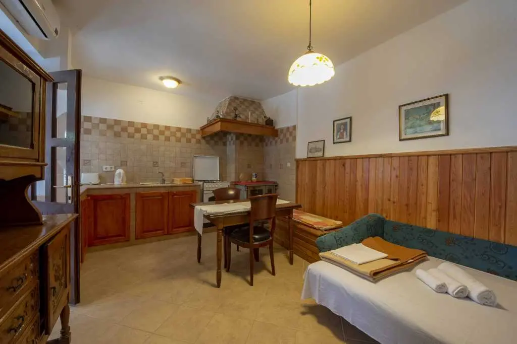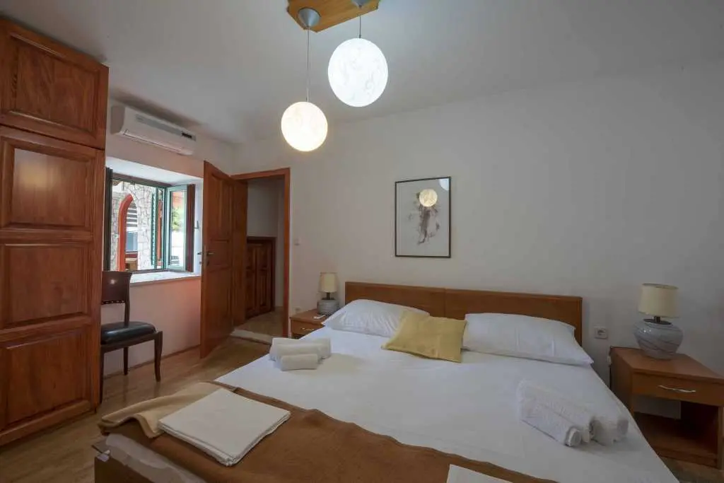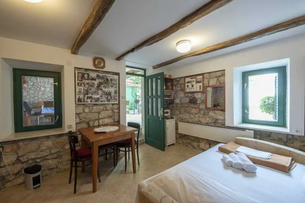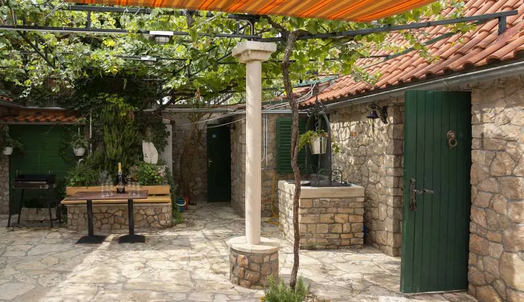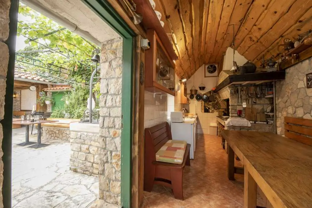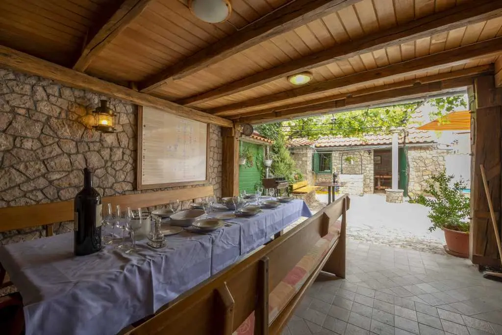 Nasz 200-letni dalmatyński kamienny dom w zabudowie bliźniaczej, położony w głębi Vodic w Čista Velika. Jest idealny dla rodzin lub małych grup z zamiarem ucieczki przed hałasem i ruchem ulicznym oraz do relaksu i cieszenia się spokojem. Piękny dom oferuje czterogwiazdkowe zakwaterowanie z dostępem do dużego tarasu i odkrytego basenu. Podczas pobytu będziesz mieć do dyspozycji 2 kuchnie, 2 łazienki, 2 sypialnie, 2 salony z wygodnymi sofami, które zamieniają się w łóżko, klimatyzacja, darmowe wi-fi, 3 TV, pralka, bezpłatne miejsce parkingowe, grill i prysznic na zewnątrz. Istnieją również 2 duże oddzielne miejsca przeznaczone do spędzania czasu. Pierwszy - 25 m2, z baldachimem i stołem dla 12 osób, wyposażony w telewizor i lodówkę. Drugi - 16,55 m2 jest czymś w rodzaju kucharza. Jest wyposażony w stół dla 10 osób, miejsce do grillowania, zlewozmywak, zmywarkę i lodówkę.
