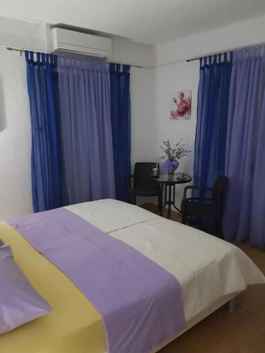 Pokoje z widokiem na morze, balkonami i prywatną plażą. Każdy pokój dysponuje prywatną łazienką poza pokojem. Klimatyzowane pokoje posiadają balkony, a opłata za przewodnik wynosi 10 EUR za dzień. Darmowe wifi Parkowałem w pobliżu domu. Parter to pokój dwuosobowy z prywatną łazienką na zewnątrz. Przed pokojem znajduje się komplet wypoczynkowy do pokoi gościnnych. Z tarasu roztacza się widok na morze i ogród.